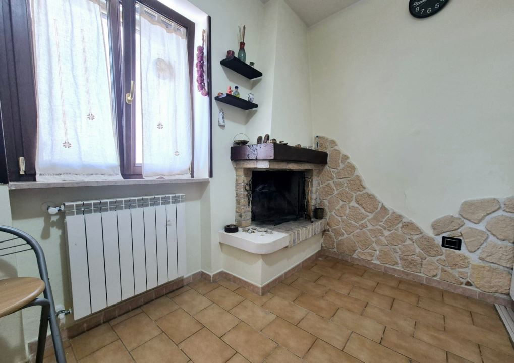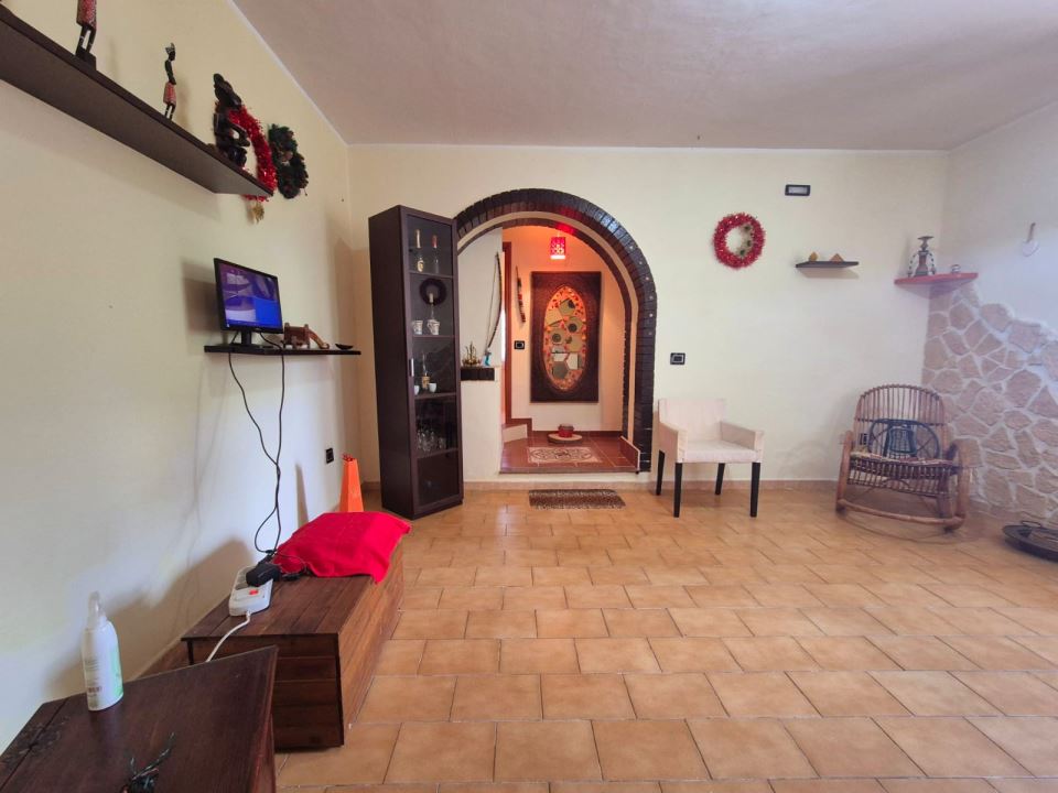 Il piano terra accessibile per mezzo di portoncino d' ingresso blindato è composto da ingresso, ampio salone con la presenza di fancoil e telecamera interna, cucina con camino in muratura, bagno con doccia e piccolo magazzino con la presenza interna della caldaia sostituita nel 2015 e dell' autoclave.