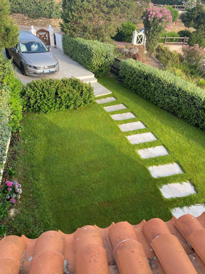 La tipologia del prato del giardino è "a Gramigna" che durante la stagione invernale va in dormienza.