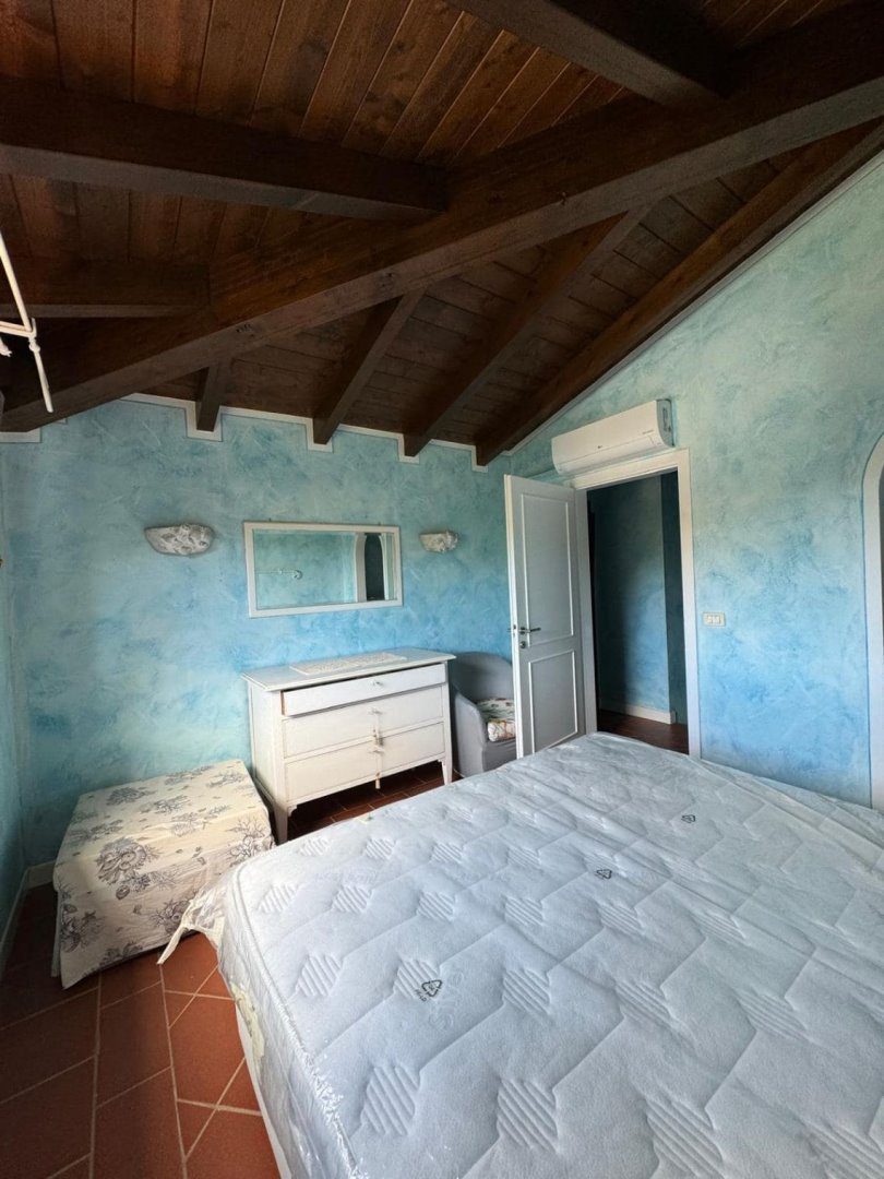 La villa disposta su due livelli, è composta da un bell'ingresso nel giardino in parte piastrellato per due comodi posti auto, un luminosissimo soggiorno con sala pranzo e uscita sulla veranda abitabile con meravigliosa vista mare, una cucina, una camera da letto tripla ed un grande bagno con antibagno al piano terra.