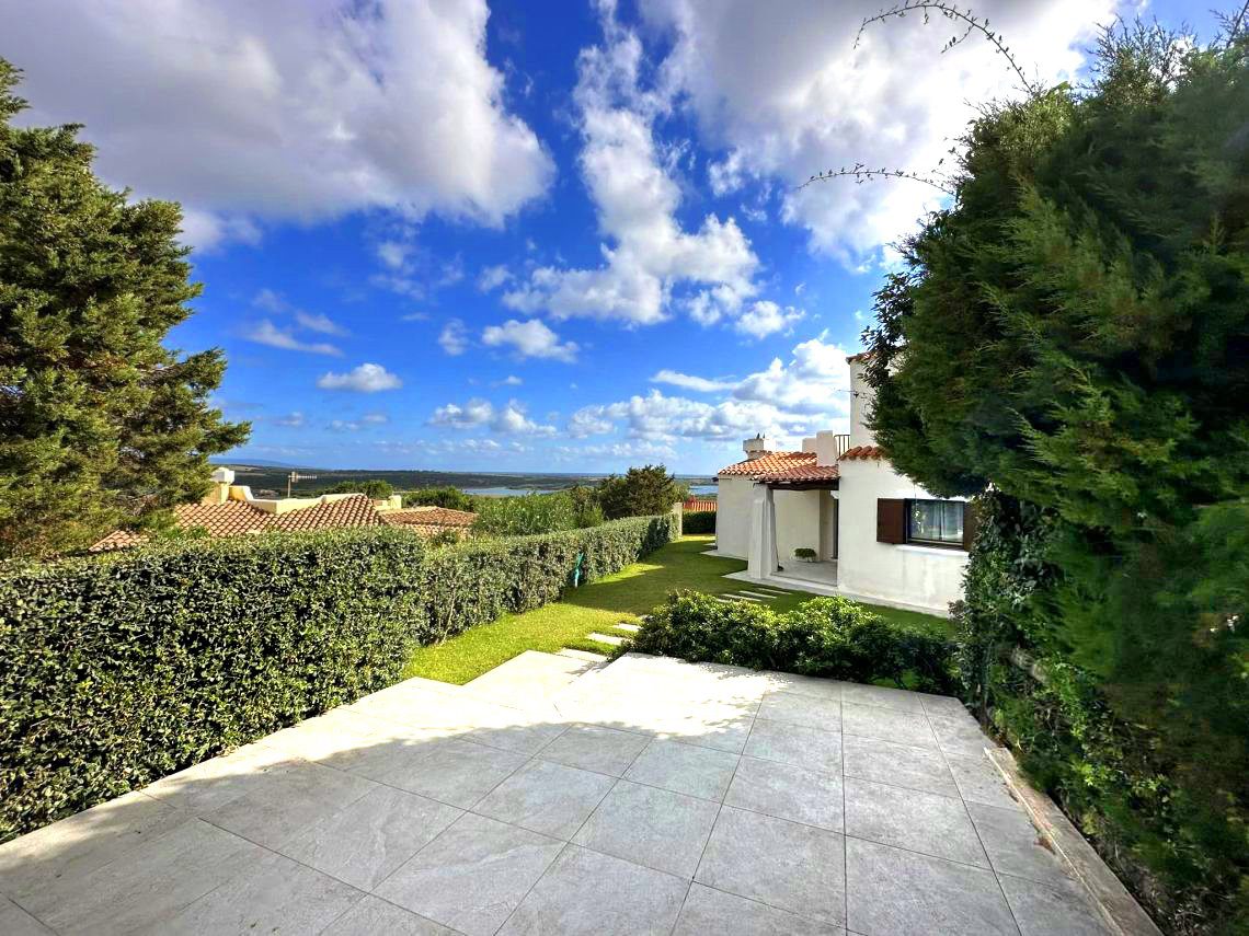 Nella posizione più prestigiosa e panoramica dell'elegante Residence County Paradise, splendida villa di circa mq 130 indipendente su tre lati e libera da terra a tetto con giardino privato e piscina con vista mare.