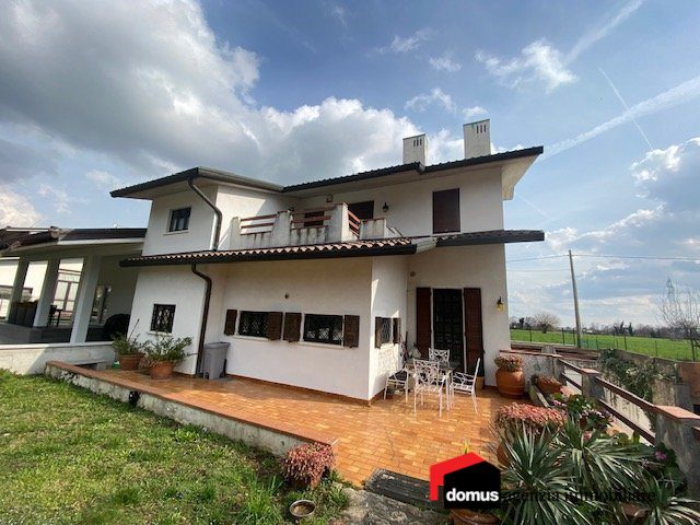 Al piano terra ampia zona giorno, due camere matrimoniali, servizio e terrazzo; al piano primo due camere, studio, servizio e terrazzo abitabile; al piano seminterrato taverna con caminetto, servizio/ lavanderia e garage doppio con basculante sezionale motorizzato.