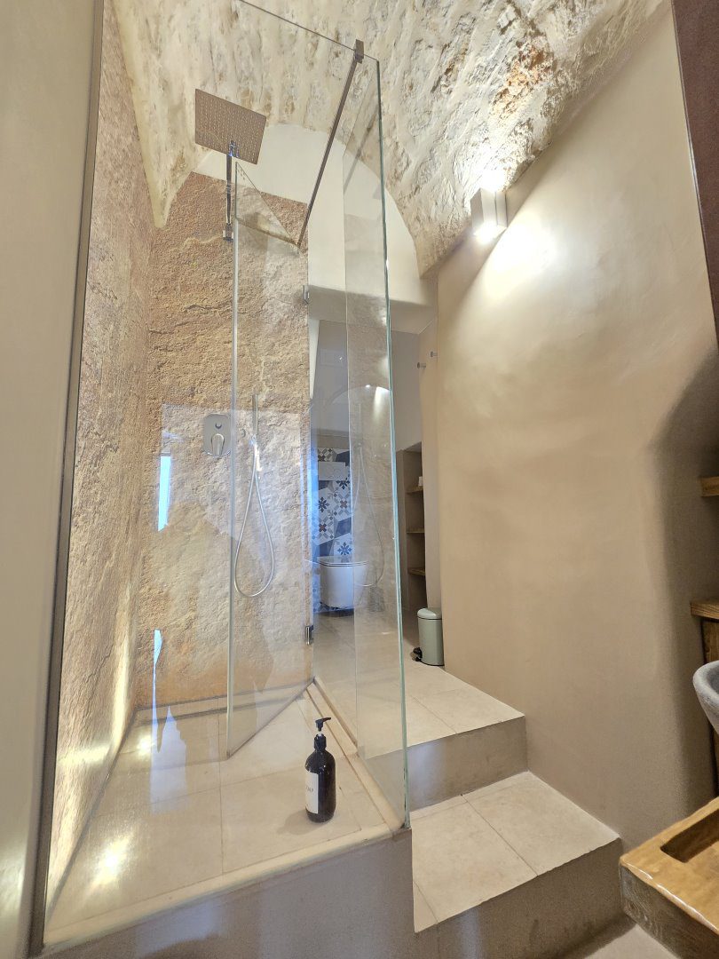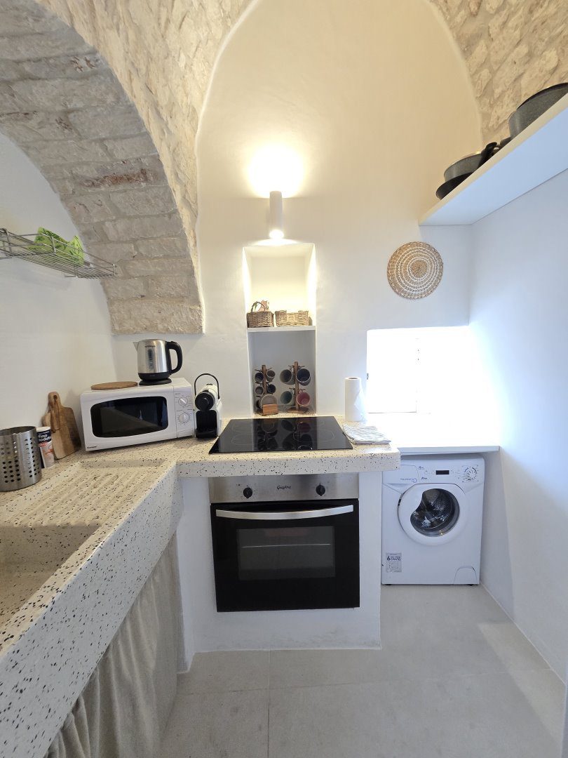 Bellissima casa finemente ristrutturata e luminosa posta in un delle vie piu' caratteristiche del Centro storico di Ostuni. Posta sulla cinta muraria, mure difensive dell'antica Ostuni, ha la comodita' di un ingresso a piano terra dove vi e' un ingressino, un grazioso cucinino completo di piano cottura ad induzione, forno, lavatrice e lavello dove al di sopra vi e' un finestrino che da luce all'ambiente, una saletta da pranzo, un'alcova letto ed un grazioso bagno con doccia. Al piano sottostante vi e' un ambiente unico con ripostiglio collegato con una graziosa scala in pietra. Entrambi i livelli godono di un affaccio panoramico anche quello sottostante che ha un piccolissimo balconcino. Dispone di aria condizionata inverter. - Maggiori Dettagli: Vista mare, Vicino a negozi, Vicino a ristorante, Vicino ai servizi, Aeroporto entro 1 ora, Aria condizionata