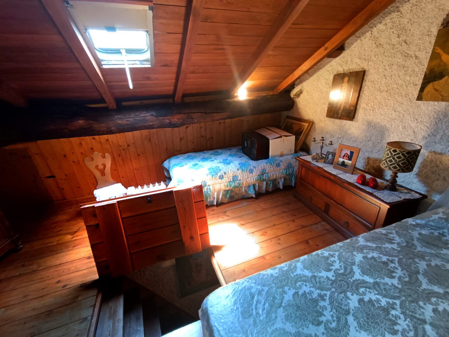 Dal pianerottolo del secondo piano per mezzo di una scala in legno si può raggiungere la terza camera con soffitto mansardato.