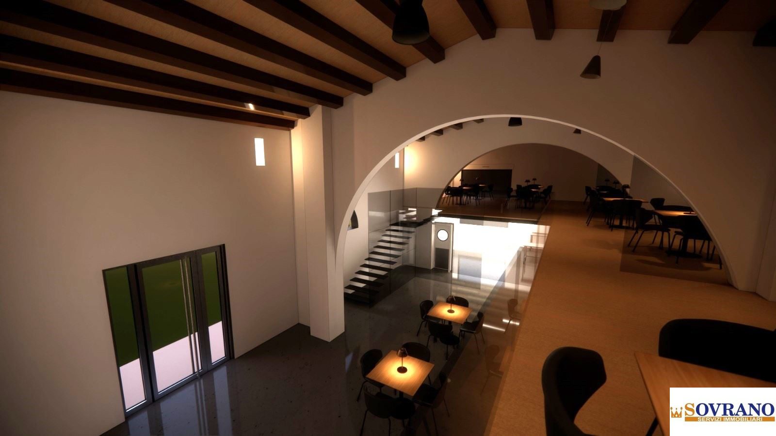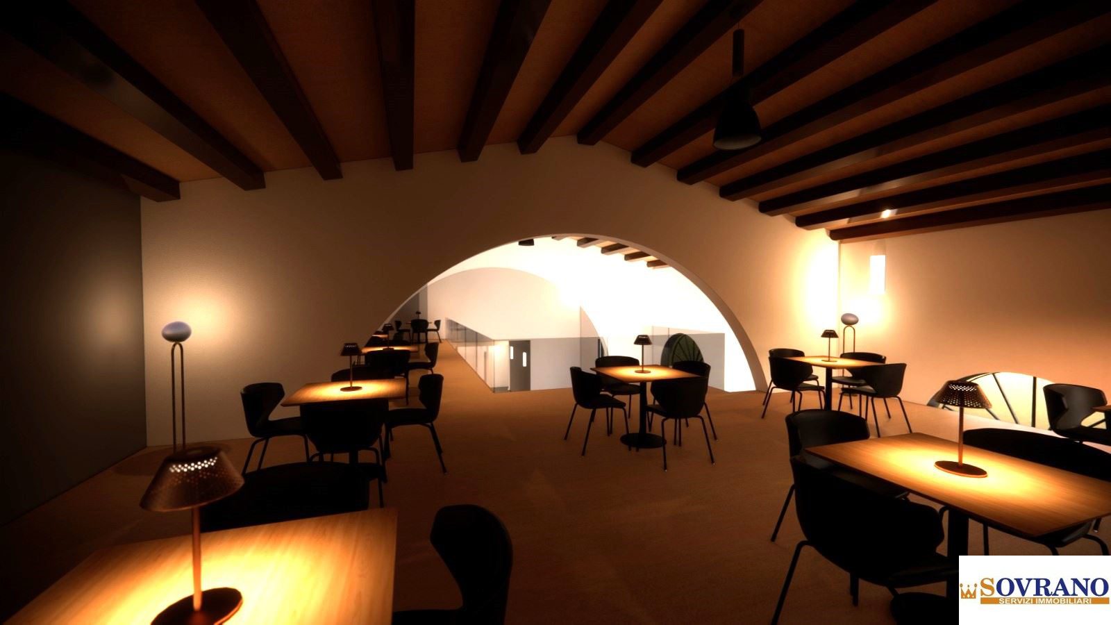 Il locale verrà consegnato completo di servizi ed impianto elettrico a norma. Tra le immagini, sono inclusi due rendering che mostrano alcune possibili destinazioni d'uso per l'immobile.