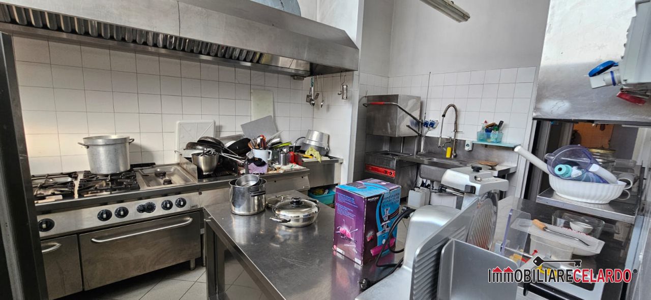 Internamente i 245 mq circa sono suddivisi in 2 grandi sale attrezzate per la zona bar, un'ampia cucina molto attrezzata, 3 bagni, 3 ripostigli e 2 magazzini (che potrebbero essere utilizzati per ampliare le sale).