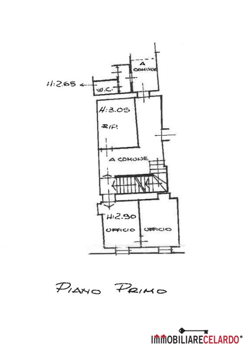 due vani ufficio, ripostiglio e due bagni.