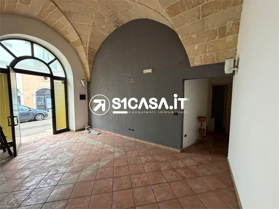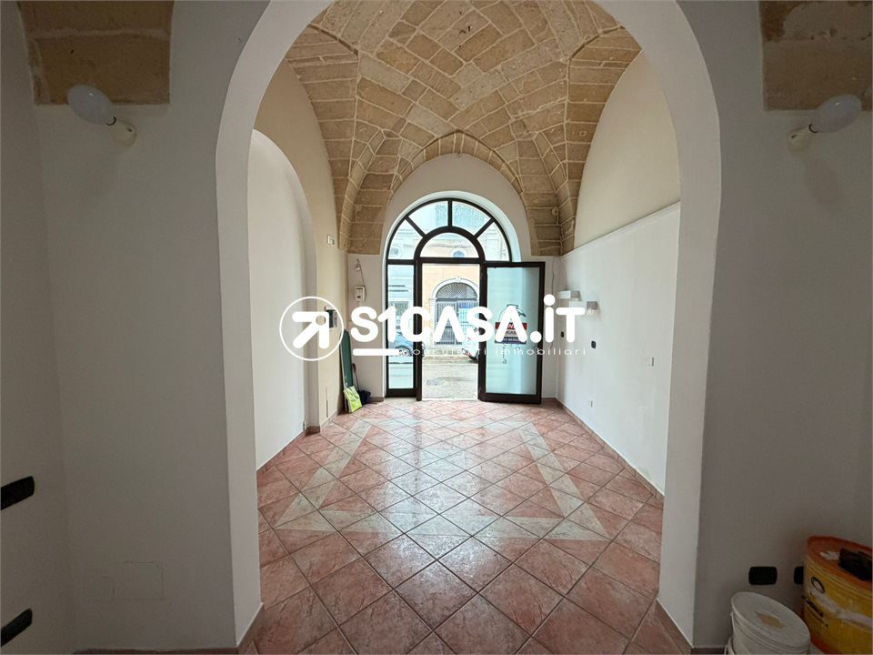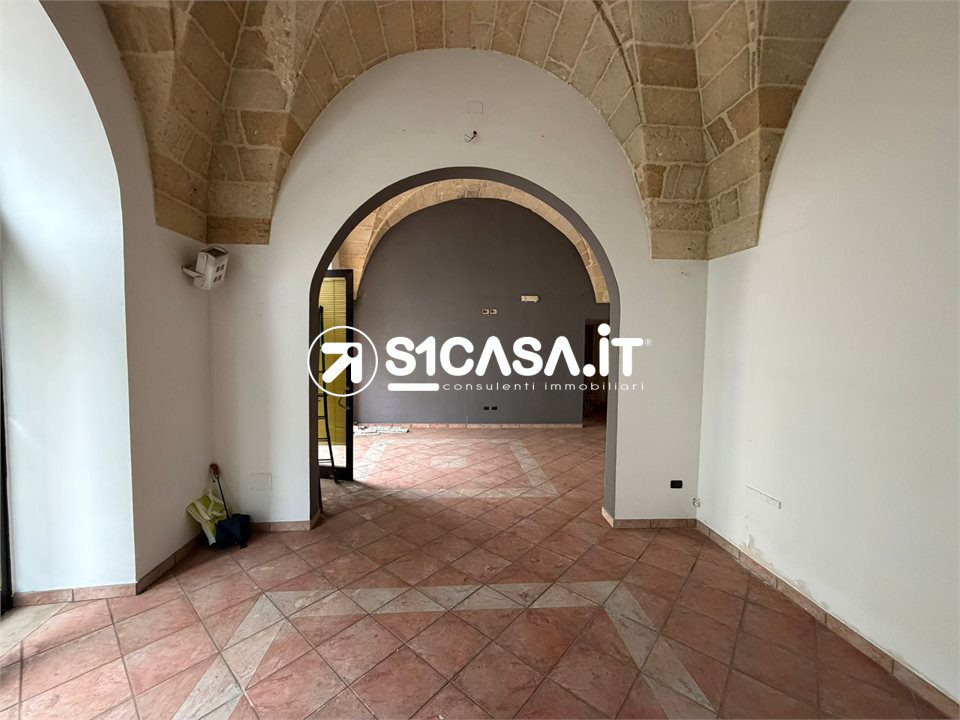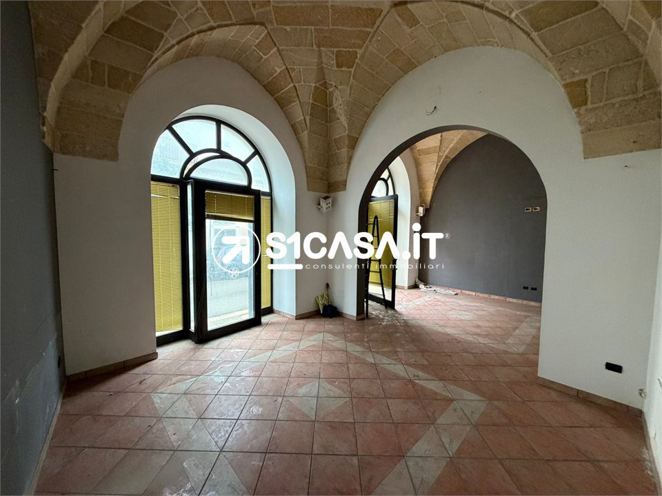 In Viale XXIV Maggio a Galatone, in posizione angolare e quindi particolarmente visibile, è in vendita un immobile composto da due locali commerciali con ingressi indipendenti, entrambi posti al piano rialzato e impreziositi dalle tipiche volte a stella. Il primo locale ha una superficie di circa 20 mq, mentre il secondo si estende per circa 52 mq e dispone di bagno e antibagno, così come il locale più piccolo, entrambi pienamente dotati di agibilità. Il locale principale è completato da un deposito di circa 42 mq, dal quale si accede direttamente alla via retrostante, oltre ad un piccolo scoperto e a un locale seminterrato di circa 36 mq, ideale come spazio di servizio o archivio. A completare la proprietà vi è il lastrico solare di esclusiva proprietà, raggiungibile tramite una scala in comune con altra unità. L'immobile, previo regolare cambio di destinazione d'uso, si presta anche a diventare una comoda e centralissima unità abitativa.