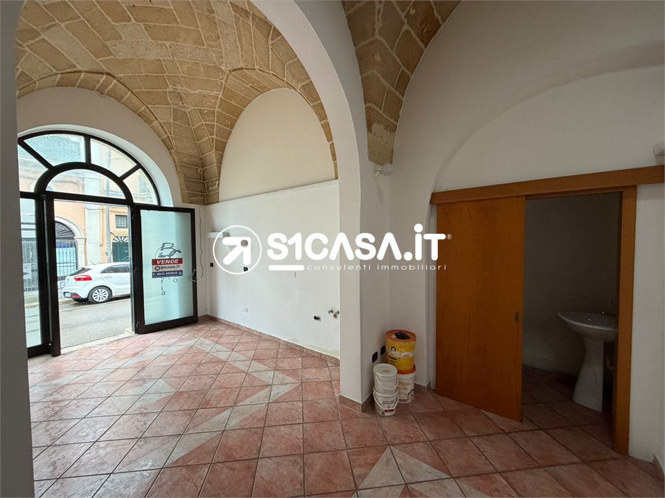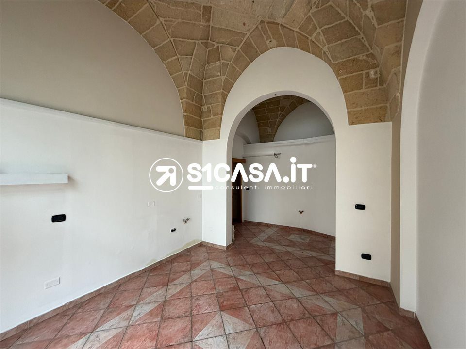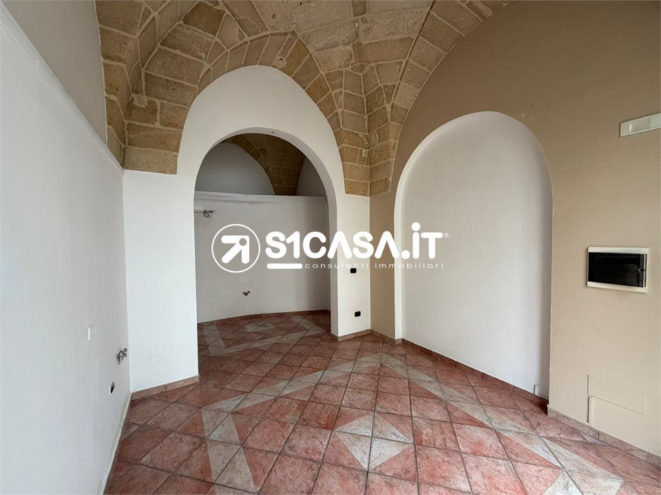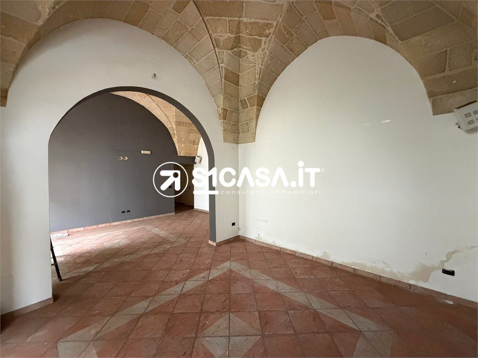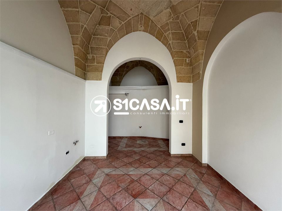 In Viale XXIV Maggio a Galatone, in posizione angolare e quindi particolarmente visibile, è in vendita un immobile composto da due locali commerciali con ingressi indipendenti, entrambi posti al piano rialzato e impreziositi dalle tipiche volte a stella. Il primo locale ha una superficie di circa 20 mq, mentre il secondo si estende per circa 52 mq e dispone di bagno e antibagno, così come il locale più piccolo, entrambi pienamente dotati di agibilità. Il locale principale è completato da un deposito di circa 42 mq, dal quale si accede direttamente alla via retrostante, oltre ad un piccolo scoperto e a un locale seminterrato di circa 36 mq, ideale come spazio di servizio o archivio. A completare la proprietà vi è il lastrico solare di esclusiva proprietà, raggiungibile tramite una scala in comune con altra unità. L'immobile, previo regolare cambio di destinazione d'uso, si presta anche a diventare una comoda e centralissima unità abitativa.