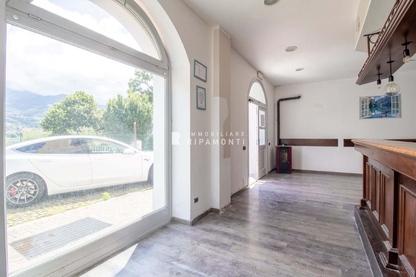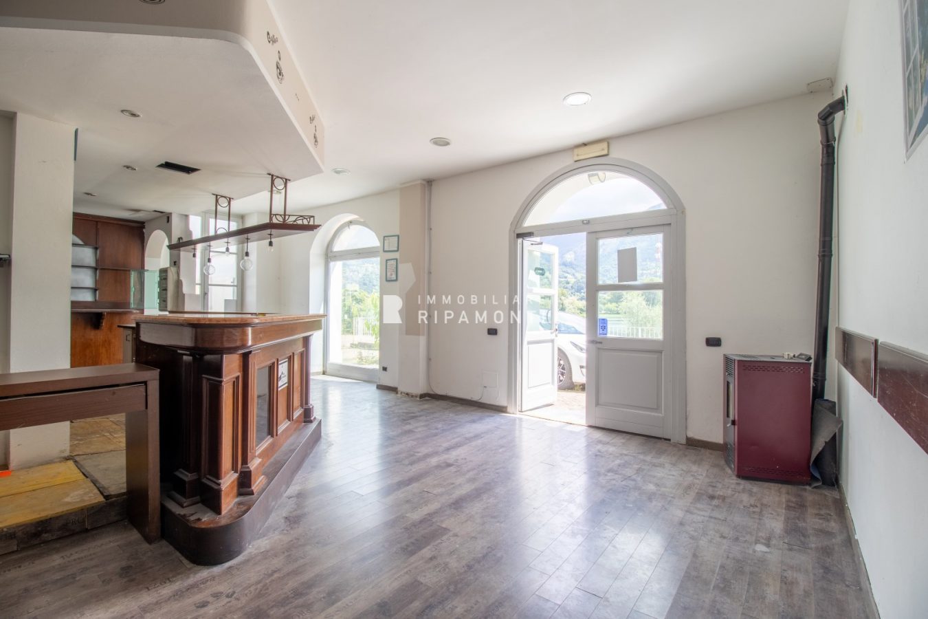 Locale open space con cucina e accessori, beneficia di un'area esterna affacciata fronte lago e la passeggiata ciclo pedonale che conduce sino al cuore della Brianza.