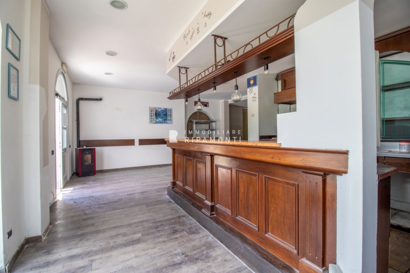 Locale open space con cucina e accessori, beneficia di un'area esterna affacciata fronte lago e la passeggiata ciclo pedonale che conduce sino al cuore della Brianza.