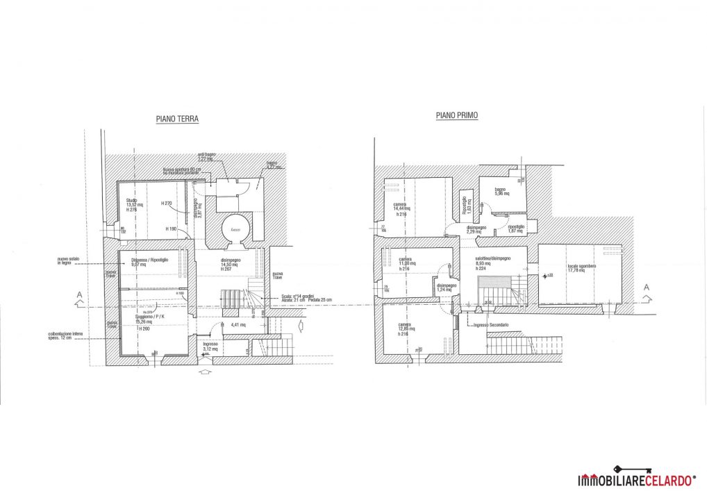 Al piano primo, tre camere, bagno, due ripostigli ed ampio disimpegno.