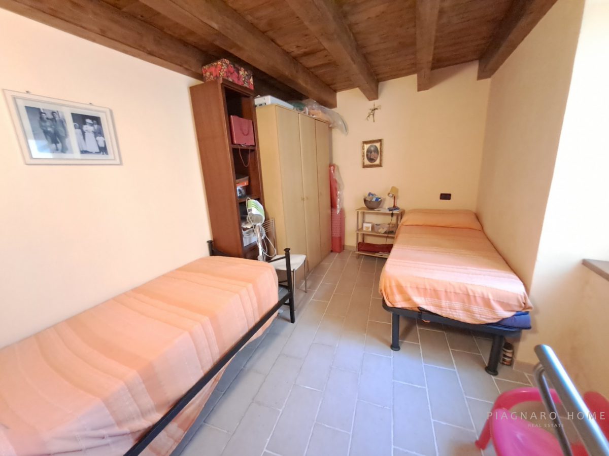 La prima unità è così composta: al piano primo camera da letto, bagno e cucina; al piano secondo due sottotetti adibiti a camere da letto, sgabuzzino e bagno.