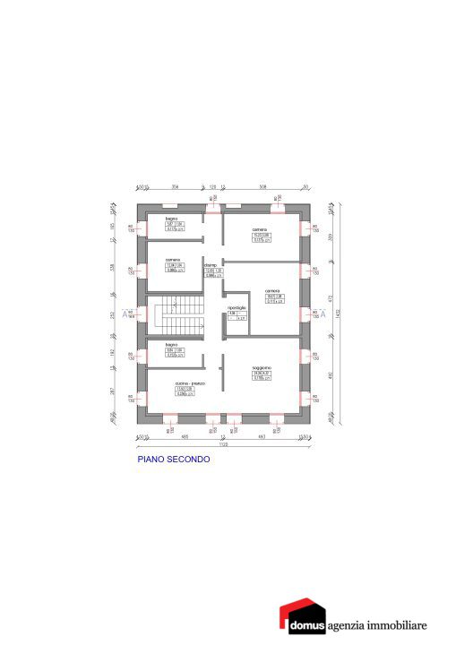 Tramite la scala interna principale si sale fino al secondo piano dove si trova un ulteriore appartamento di 113 mq calpestabili con una cucina-pranzo da 14 mq e soggiorno da 24 mq completando la zona giorno con un bagno per gli ospiti.