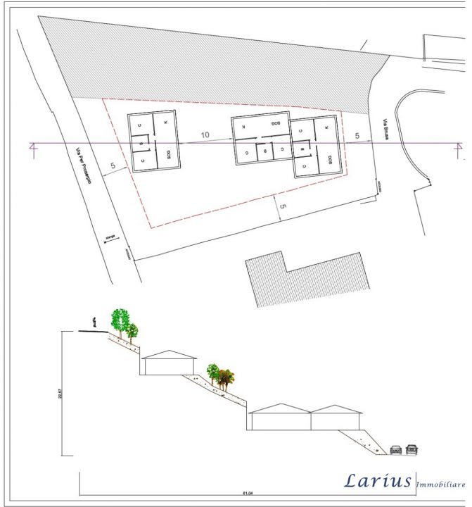 In posizione panoramica e soleggiata, a pochi passi dal centro e dai principali servizi e raccordi stradali, proponiamo ampio terreno edificabile disposto a balze di complessivi mq 1625. Parte della proprietà è a destinazione boschiva (piantumazione a castani e noce) e pertanto inedificabile per mq 580, i restanti 1.045 sono invece a destinazione residenziale con possibilità edificatoria massima pari a circa mq 260. L'intera proprietà, può essere suddivisa in due o tre lotti per la realizzazione di due/tre unità immobiliari (due villette singole di mq 130 per unità immobiliare o una villetta singola ed una bifamiliare da mq 87 per unità immobiliare) ed è inoltre dotata di tutti i sotto servizi primari quali acqua, elettricità, gas, fognatura ed illuminazione pubblica. Nella prima ipotesi è possibile realizzare un fabbricato libero su 4 lati così composto: ingresso, soggiorno, cucina, tre camere, doppi servizi e ripostiglio. Nella seconda invece, tre piccole unità immobiliari composte da ingresso, soggiorno con angolo cottura, due camere e bagno. E' disponibile presso nostro ufficio documentazione inerente lo studio di fattibilità di quanto esposto. Idoneo per privati e come forma di investimento/operazione immobiliare. Disponibilità immediata. - Maggiori Dettagli: Vista panoramica , Fermata bus nelle immediate vicinanze, Servizi di primaria necessità nelle vicinanze, Stazione ferroviaria nelle immediate vicinanze, Scuole, Farmacia