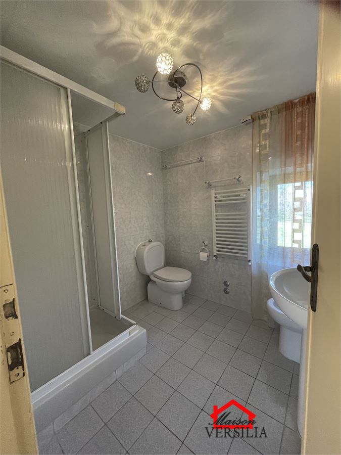 Il bagno si trova al secondo piano raggiungibile salendo pochi gradini ed è' dotato di cabina doccia (finestrato).