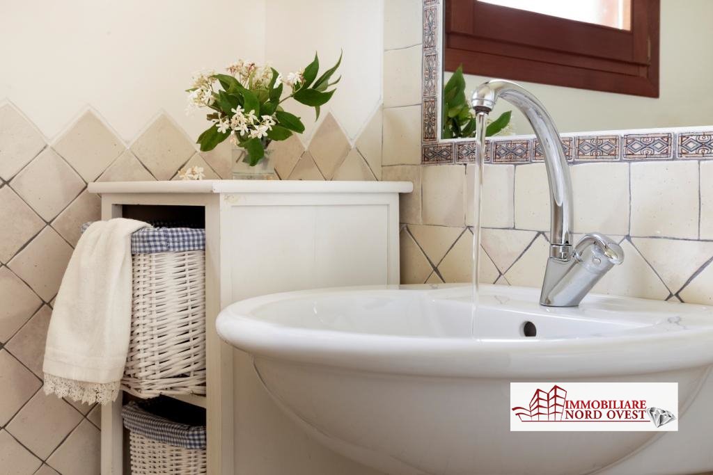 La villa è immersa nel verde ben curato e, sul retro, è presente una doccia esterna.