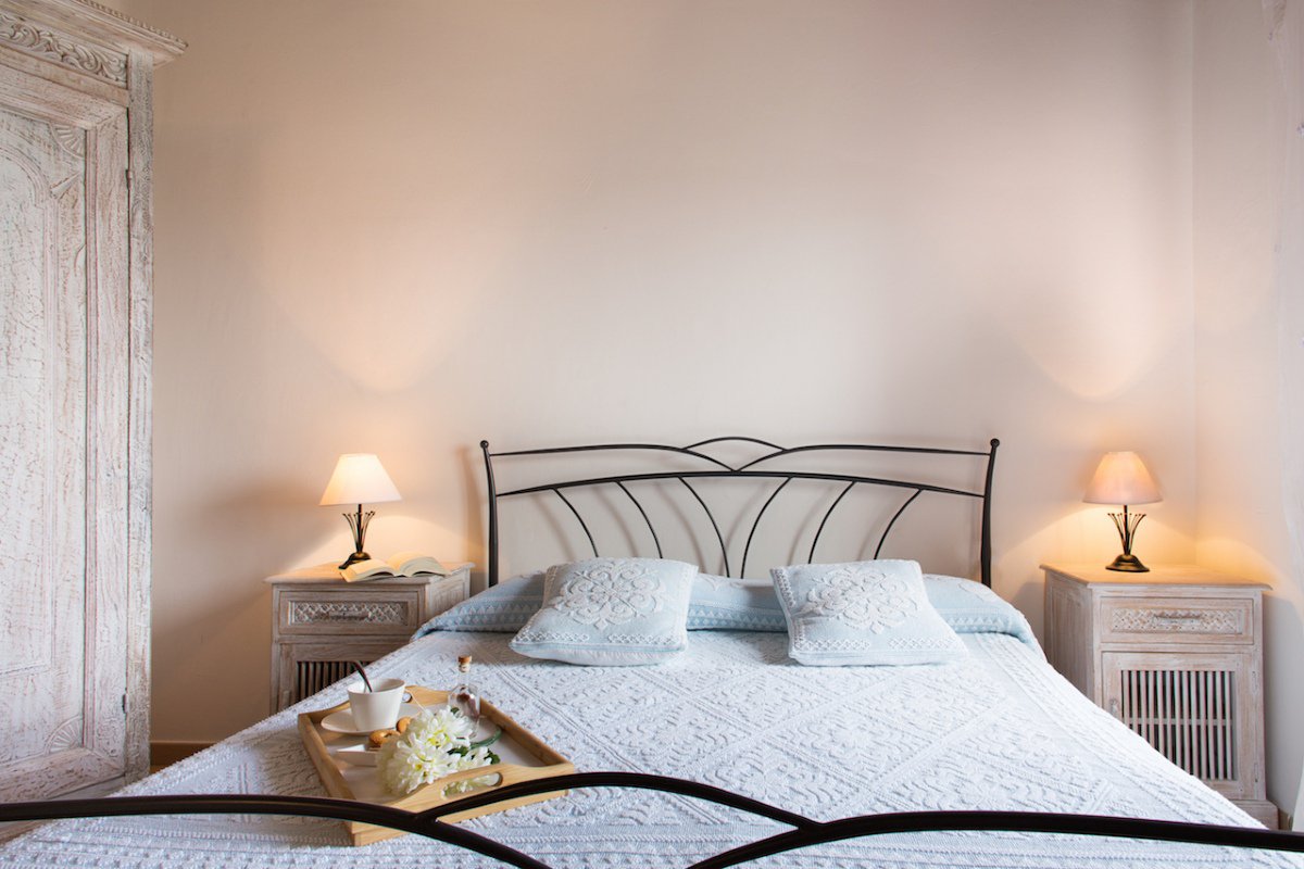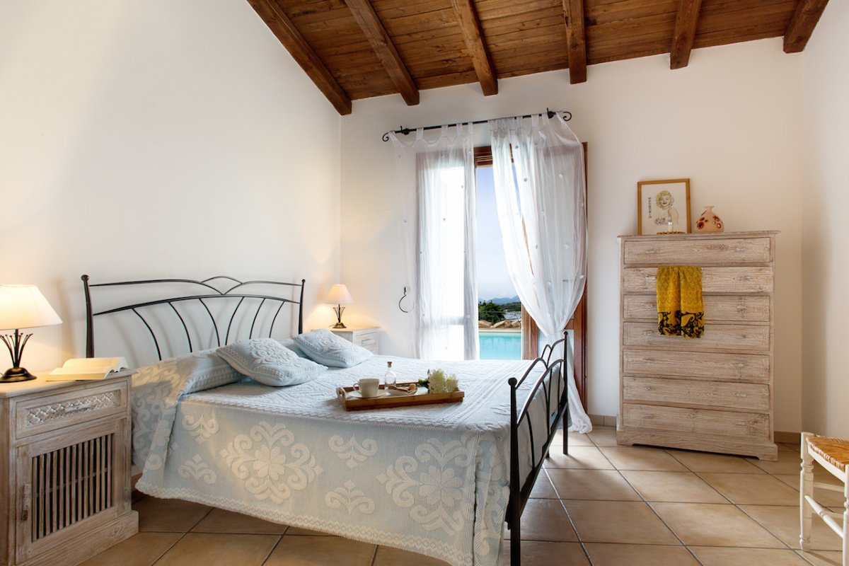 La zona notte è composta da due camere matrimoniali e da una camera doppia, tutte con accesso diretto all'esterno e con vista mare/piscina, e da due bagni con doccia.