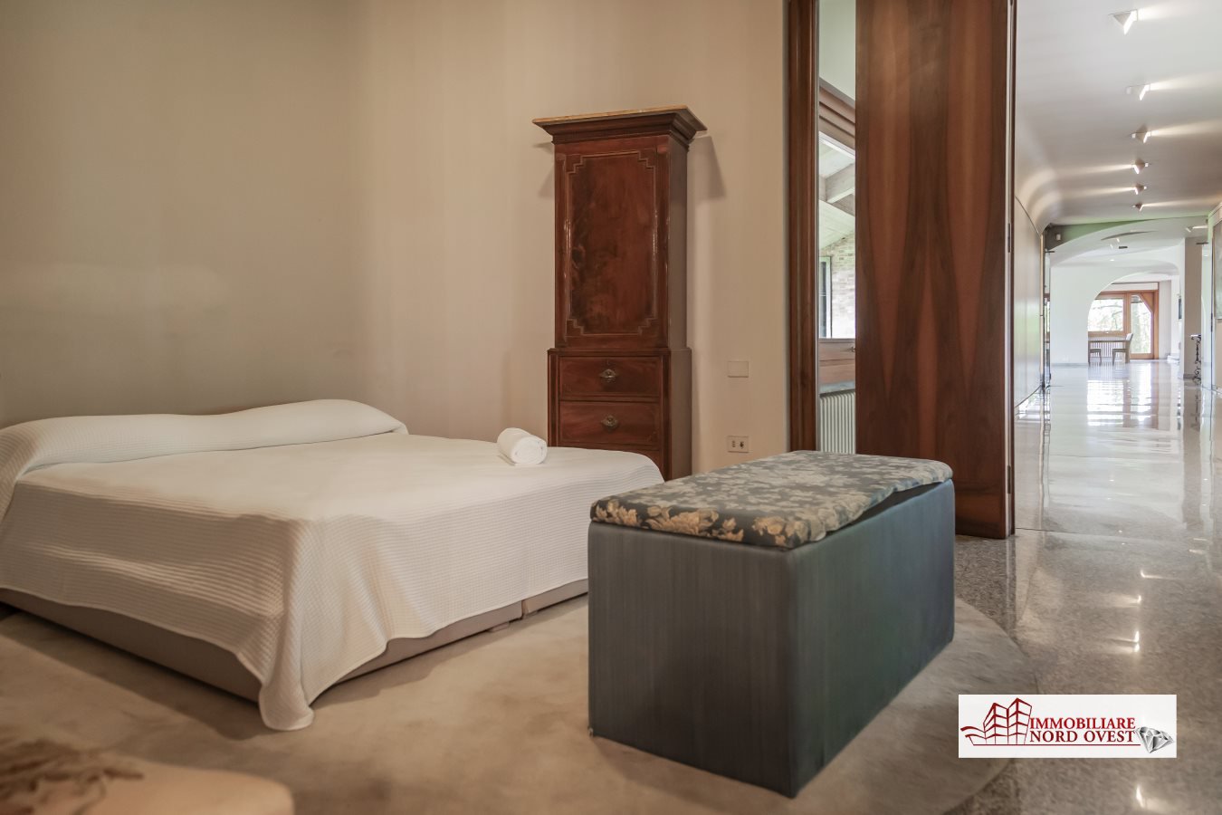 La zona notte ospita sette eleganti camere da letto, tutte con bagno privato en-suite, capaci di accogliere comodamente 16 ospiti.