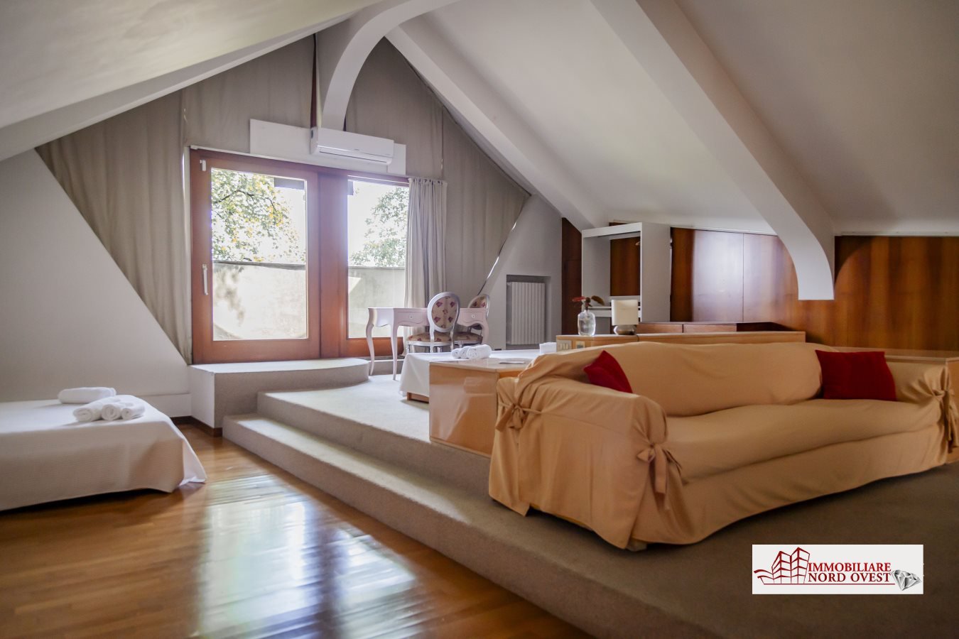 Tra queste, la Suite padronale mansardata incanta con i suoi soffitti a vela di quasi quattro metri, doppi letti matrimoniali e un bagno privato con vasca, garantendo un soggiorno in totale privacy.