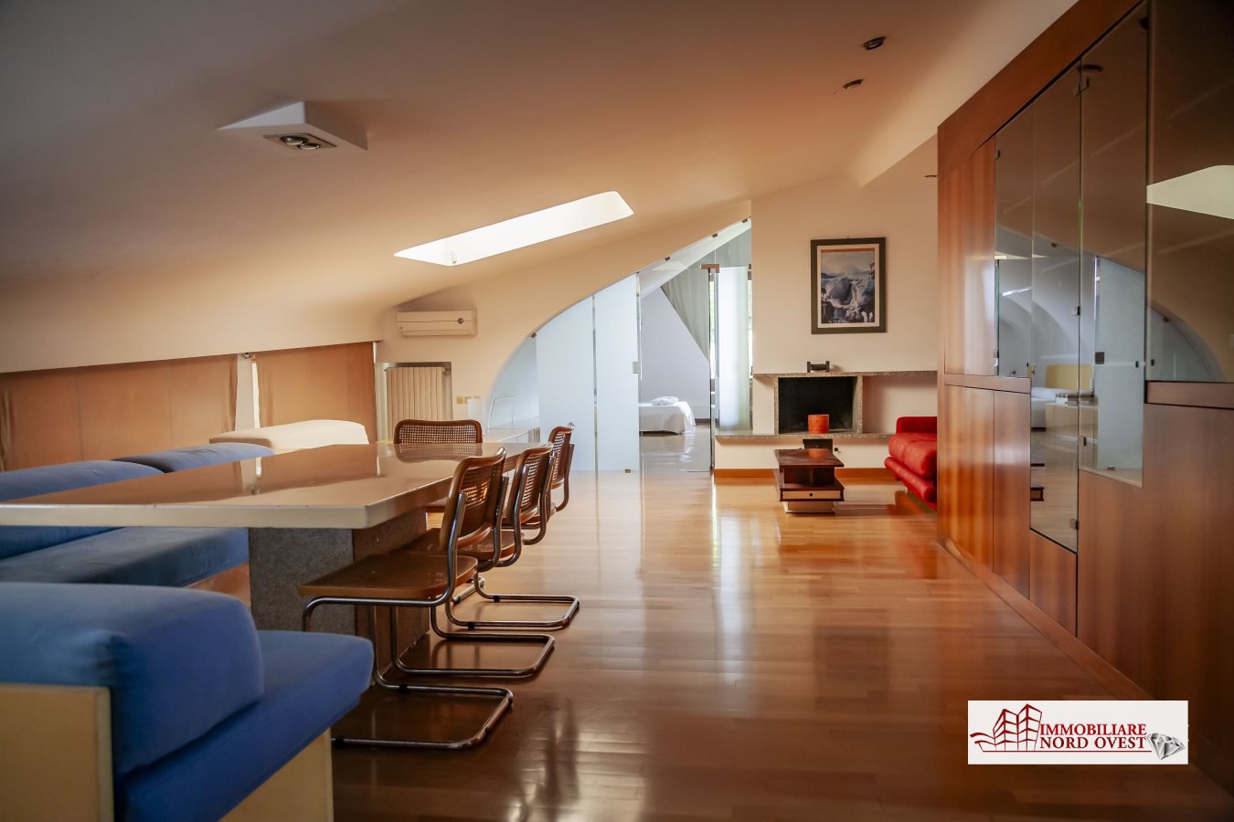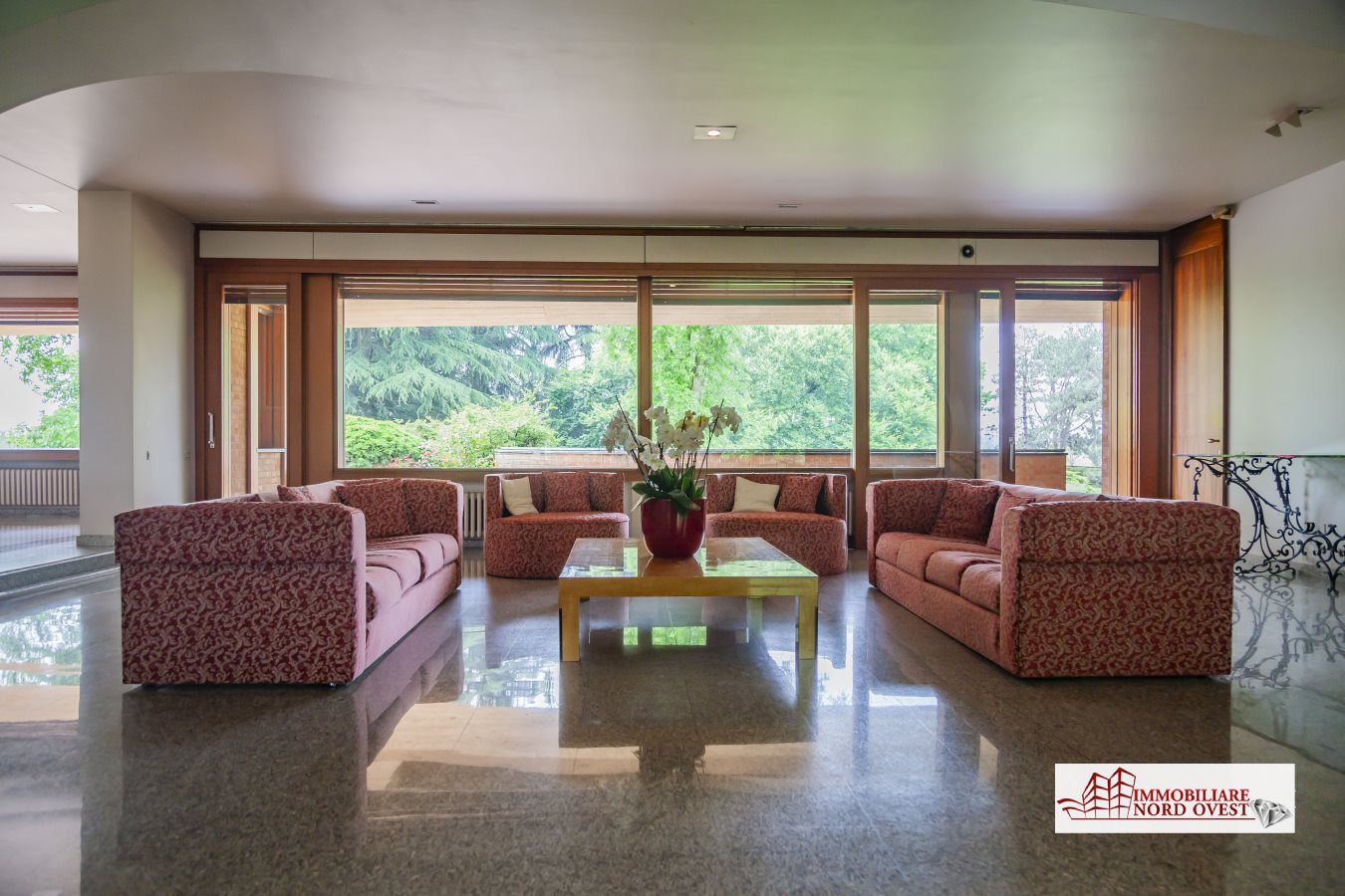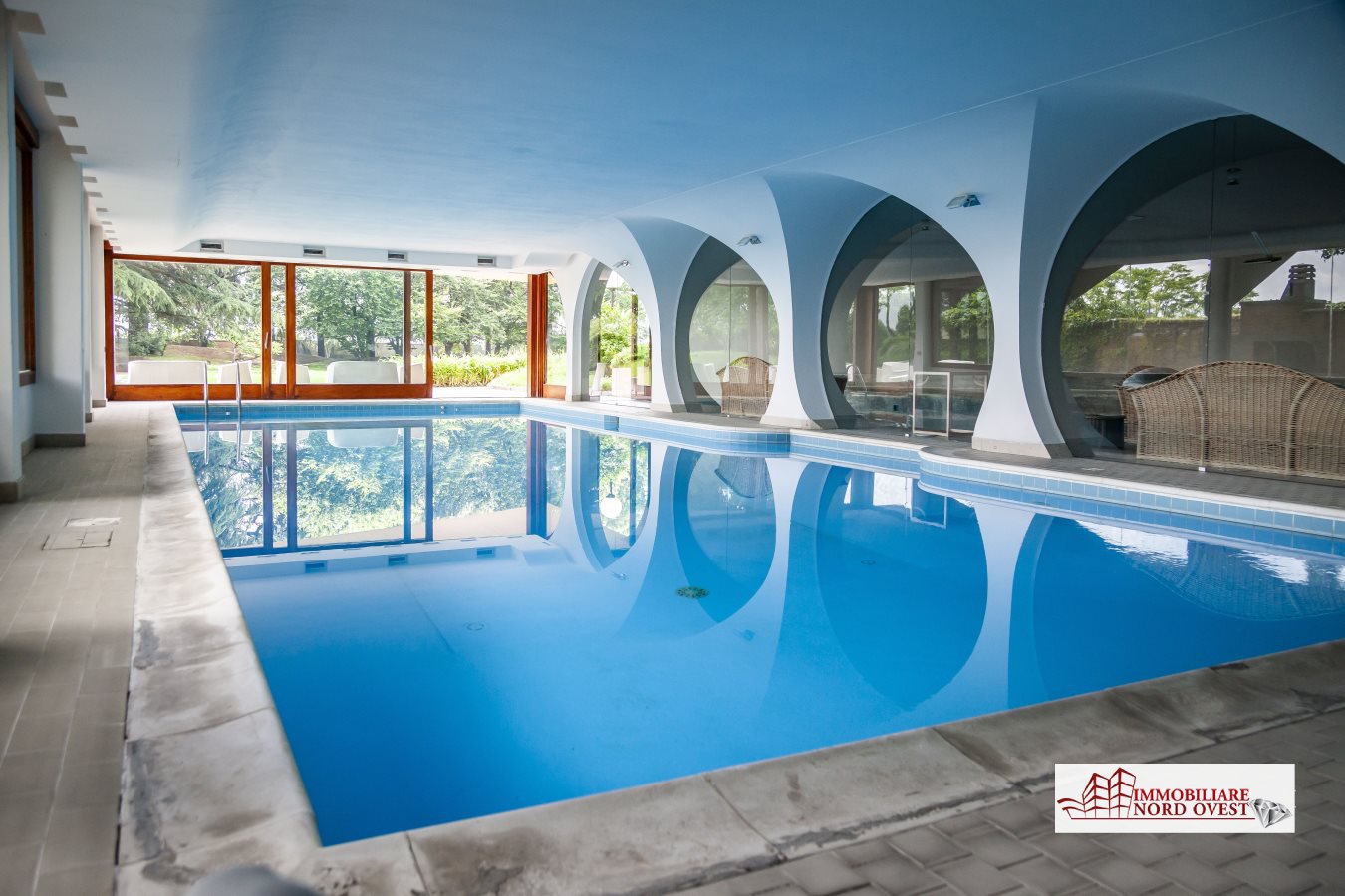 All'interno, gli spazi si aprono in un ampio salone doppio con camino, avvolto dalla luce naturale che filtra dalle grandi vetrate affacciate sul giardino. Al centro della scena, la lussuosa piscina coperta - fruibile tutto l'anno - crea un'atmosfera esclusiva, ideale per rilassarsi o divertirsi in ogni stagione.