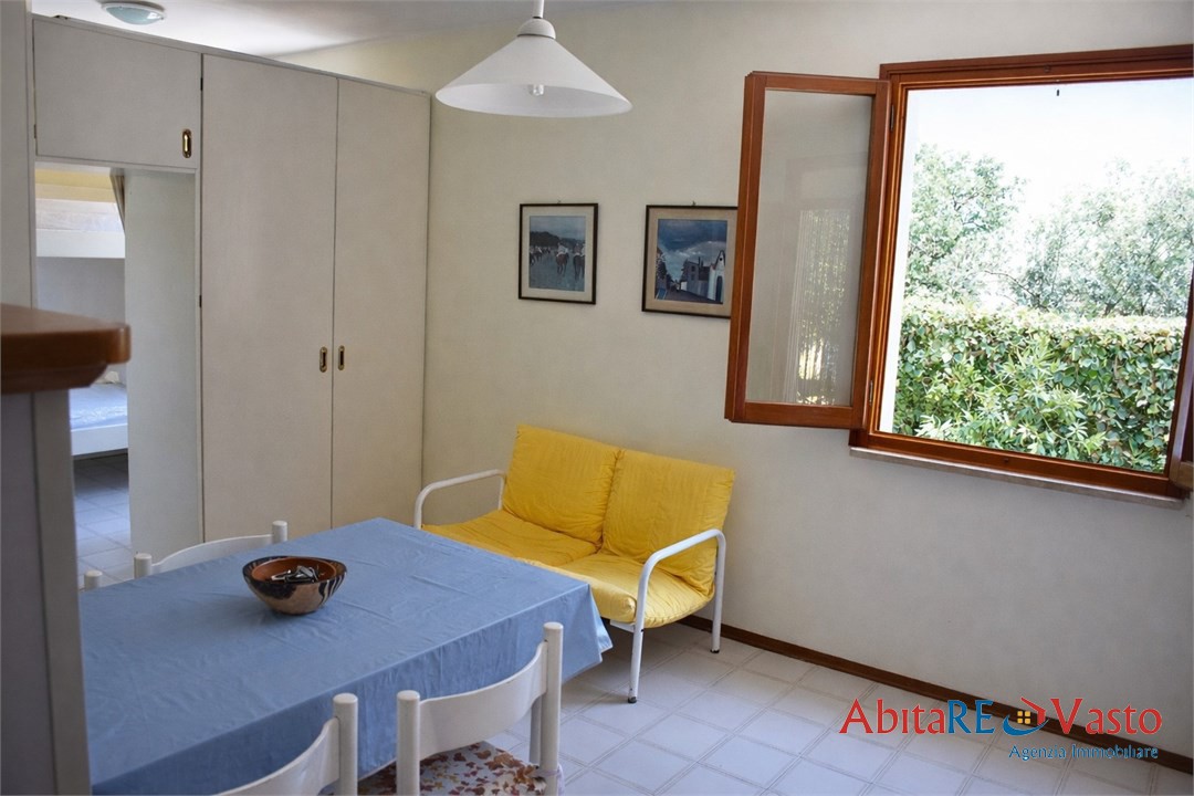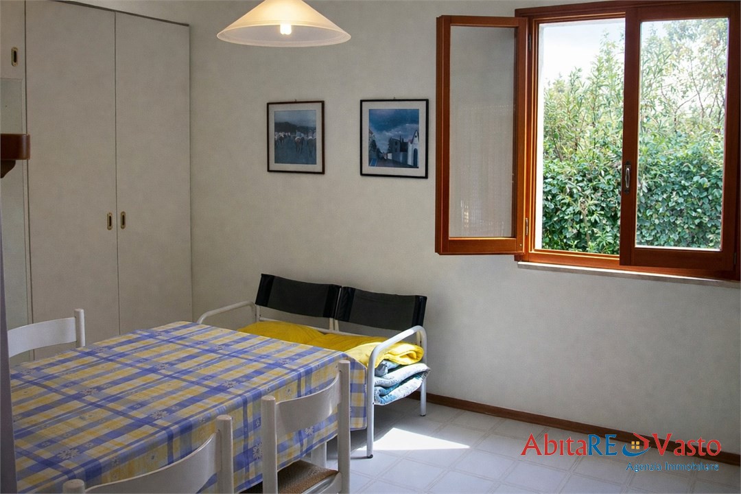 A pochi passi dalla suggestiva spiaggia di Vignola, nel cuore di uno dei tratti più autentici della Costa dei Trabocchi, proponiamo in locazione per la stagione estiva una graziosa villetta indipendente immersa nella natura, circondata da ampio giardino privato recintato. L'abitazione è composta da soggiorno con angolo cottura, camera matrimoniale, zona notte con letto a castello separata da armadio a muro, bagno finestrato con doccia e patio esterno coperto con tettoia in legno, ideale per vivere momenti di relax all'aperto. Nel giardino è disponibile anche una comoda rimessa ad uso ripostiglio. Il mare è raggiungibile tramite un caratteristico sentiero naturale di circa 200 metri, che conduce alla spiaggia libera di ciottoli di Vignola, uno dei tratti più incontaminati della costa. Posti letto: fino a 4; Animali di piccola taglia ammessi; Disponibile da giugno a settembre. Locazioni settimanali, quindicinali o mensili - prezzi su richiesta