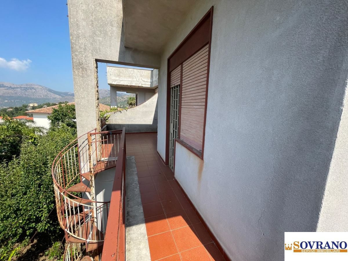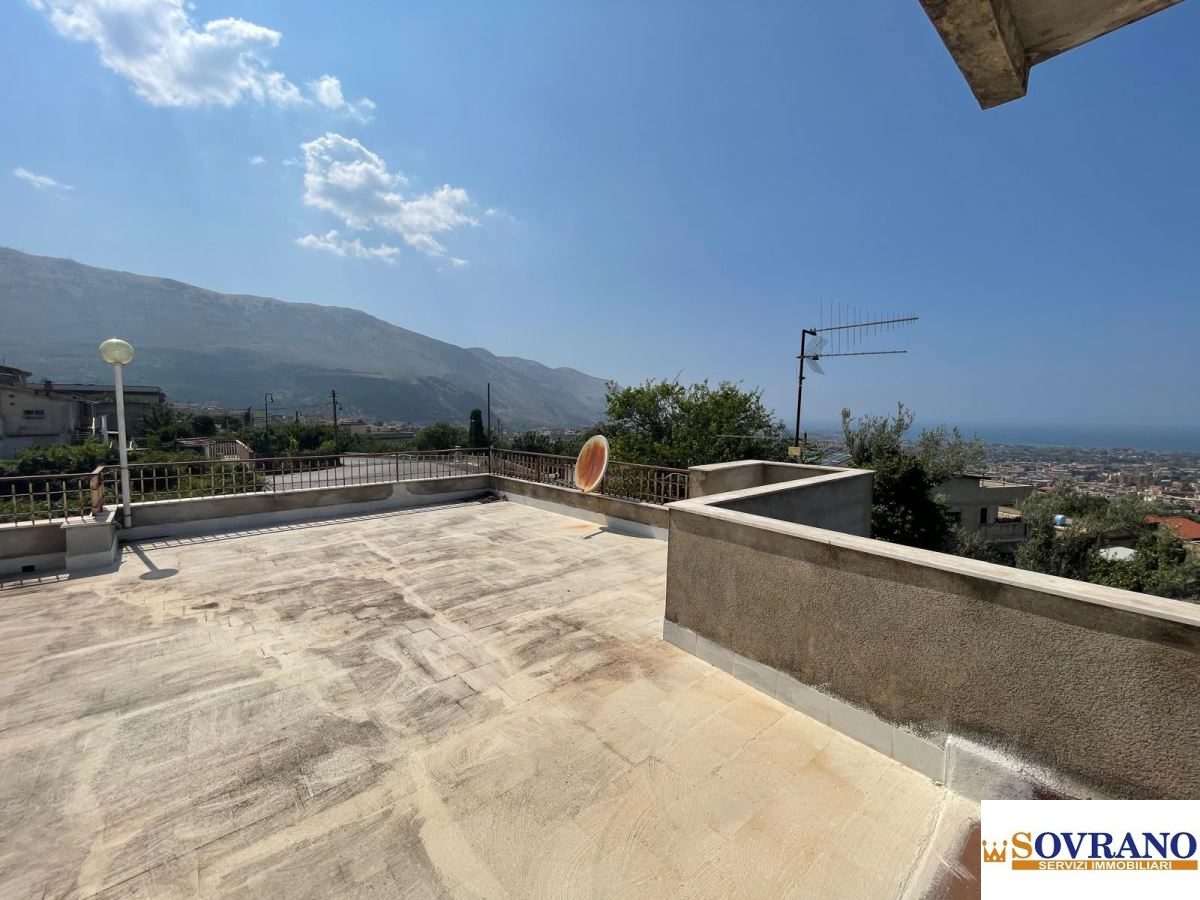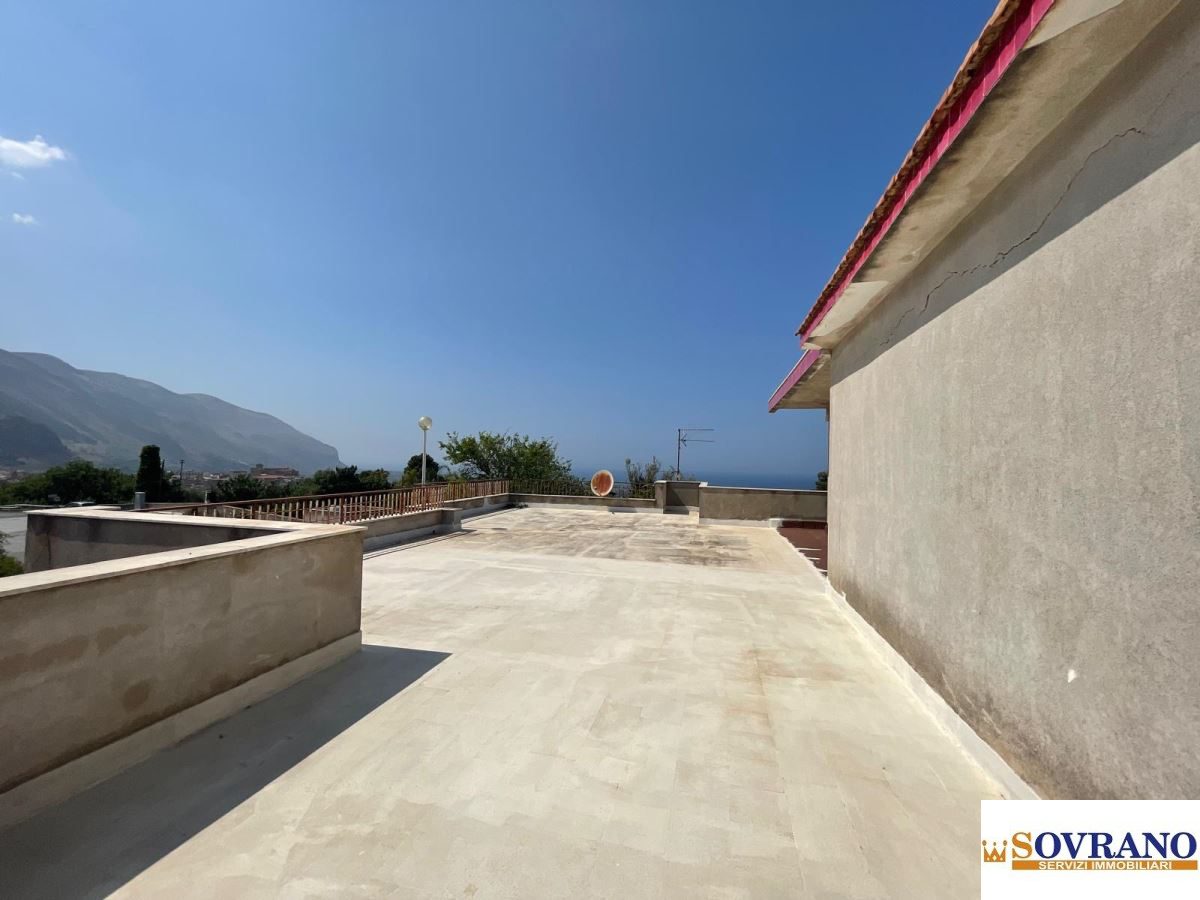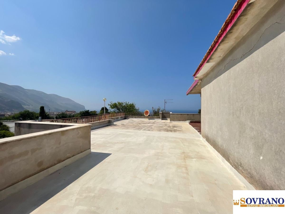 Al primo piano si sviluppa l'abitazione principale, composta da un salone doppio molto luminoso, tre camere da letto, una cucina semi-abitabile, un bagno e un comodo terrazzo a livello. Da qui, una scala conduce al secondo piano, dove si trova un ampio terrazzo calpestabile con vista aperta sul mare e sulla città di Carini, perfetto per chi desidera vivere momenti di relax in totale privacy.