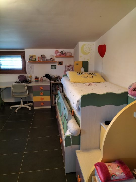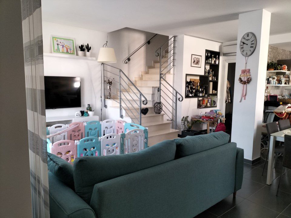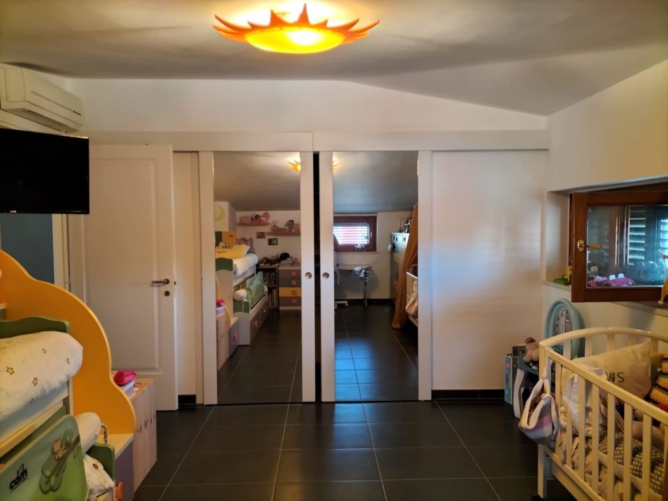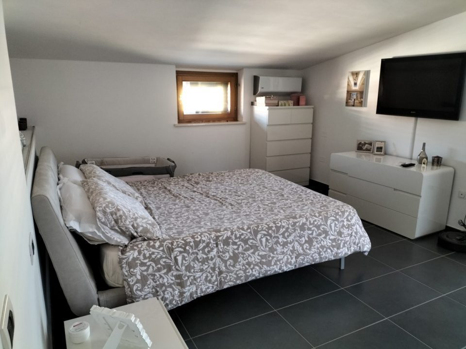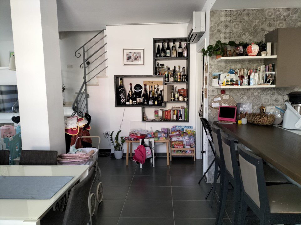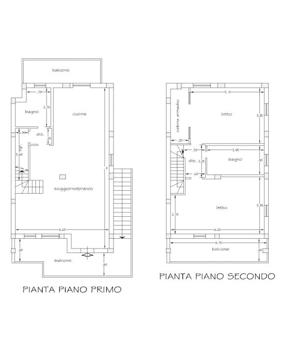 Piano primo con ampio terrazzo di ingresso, zona giorno con cucina comunicante e uscita su balcone, disimpegno, ripostiglio, bagno e scala a vista per accedere al piano superiore costituito da bagno e n. 2 camere da letto di cui una con spaziosa cabina armadio.
