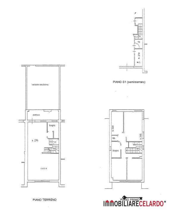 al piano primo da 4 camere, bagno e ripostiglio;