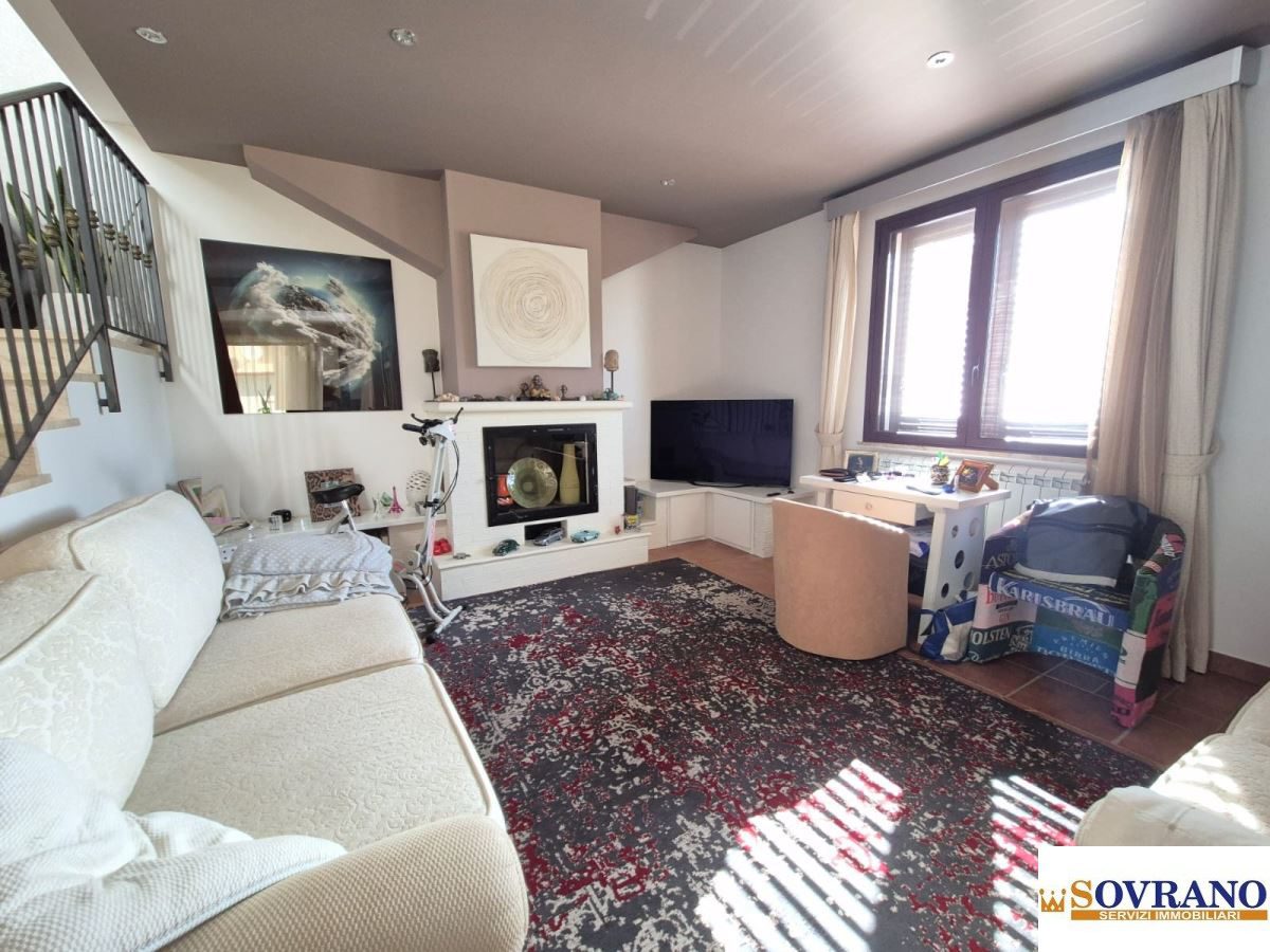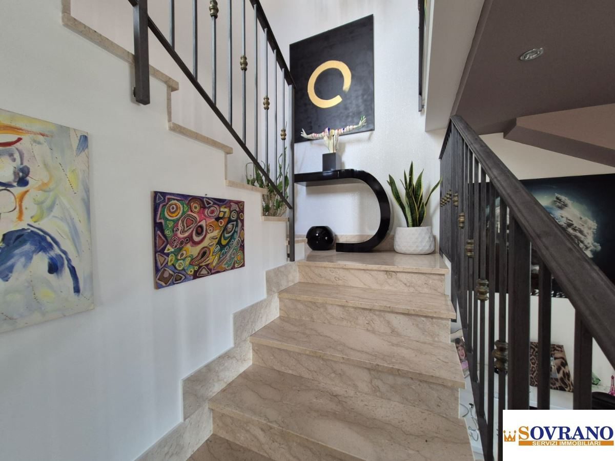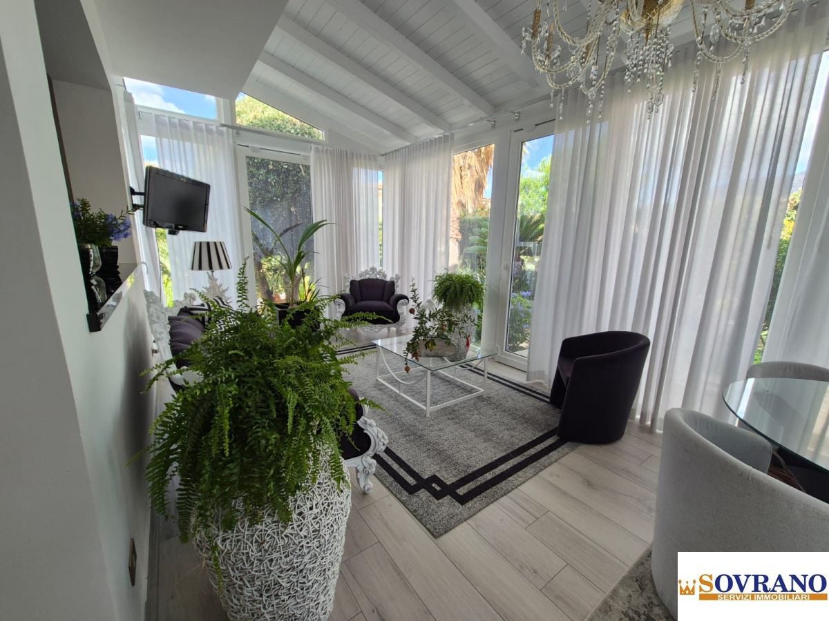 L'ingresso conduce a una zona living ariosa e accogliente, illuminata da una grande vetrata che inonda l'ambiente di luce naturale e si fonde armoniosamente con una raffinata cucina in muratura. Ogni angolo trasmette calore e convivialità, mentre la veranda chiusa a vetri aggiunge spazio e versatilità, perfetta per godersi il panorama in ogni stagione. Il piano terra ospita anche un comodo servizio, mentre salendo al piano superiore si apre la zona notte con due camere da letto, di cui una con cabina armadio, e un bagno elegantemente rifinito.