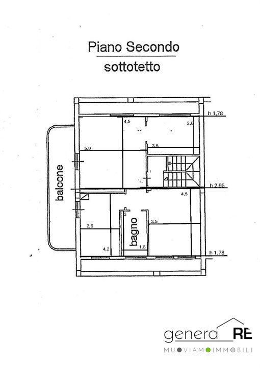 Mansarda (60 mq): Soggiorno con cucina, 2 camere, bagno, balcone.