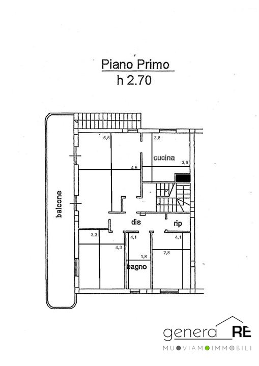 Primo piano (88 mq): Soggiorno, cucina, 2 camere, bagno, ripostiglio, balcone semi perimetrale dotato di secondo ingresso indipendente da scala esterna.