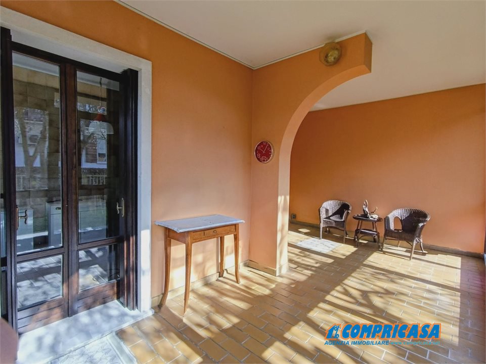 In quartiere residenziale, vendesi incantevole villa singola suddivisa in due appartamenti comunicanti con portici e ampio giardino.