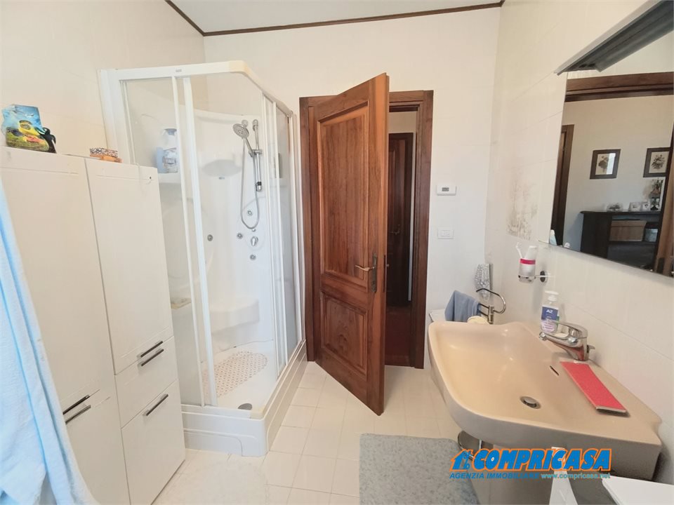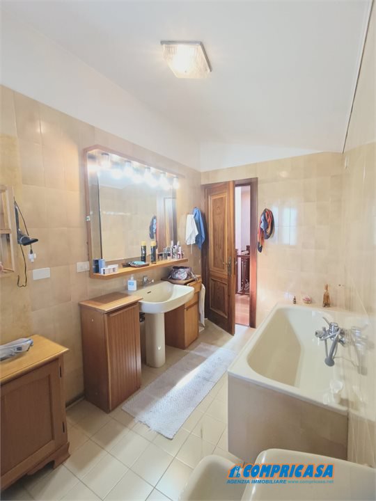 e un bagno/lavanderia. Al piano superiore un' altra cucina con grande poggiolo, tre camere da letto, un bagno finestrato e un' altro vano adibito a studio e tempo libero.