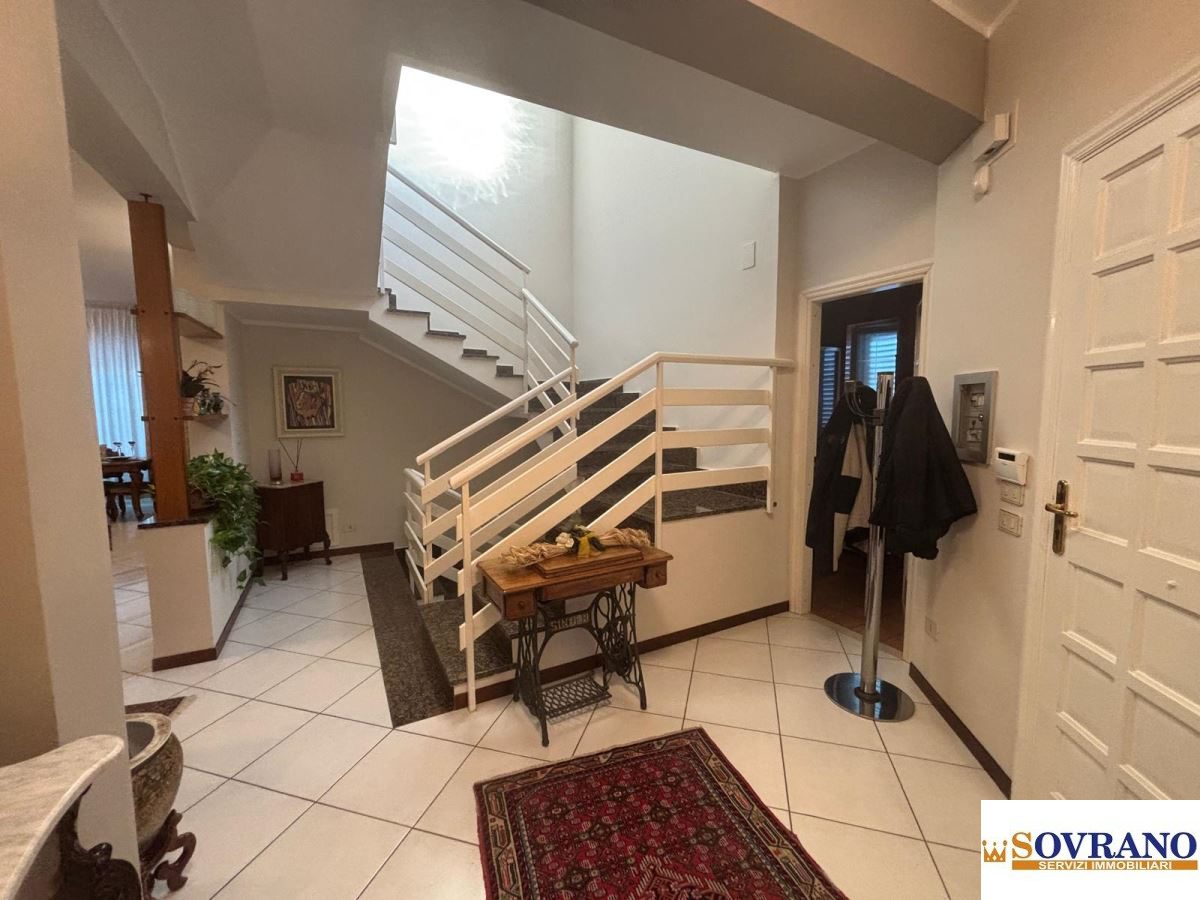 Al piano terra, un elegante portico introduce all'interno dell'abitazione, dove si viene accolti da un grande salone ideale per momenti conviviali, uno studio riservato, un bagno e una spaziosa cucina abitabile, cuore della casa, pensata per chi ama vivere appieno gli spazi domestici. Una scala interna conduce al primo piano, dedicato alla zona notte, che ospita tre camere da letto e due bagni, offrendo privacy e funzionalità per ogni membro della famiglia.