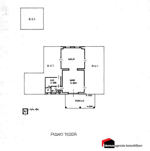 La porzione a bar al piano terra è così costituita: due sale, ripostiglio, disbrigo e w.c. esterno.