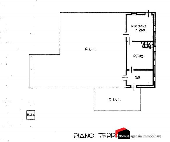La porzione a negozio al piano terra è così costituita: negozio, retro-bottega e ripostiglio