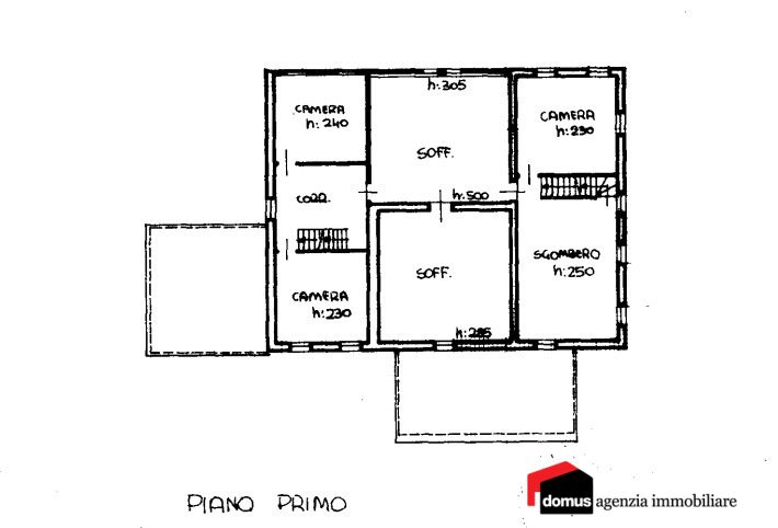 La porzione ad abitazione è così costituita: al piano terra cucina e ripostiglio; al piano primo tre camere, corridoio, ripostiglio e soffitta; al piano secondo altra soffitta.