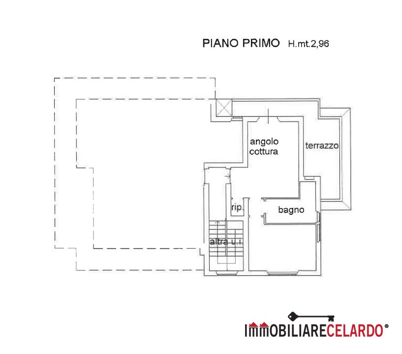 - Primo appartamento di mq 90 posto al piano terra composto da soggiorno/cucina, due camere, bagno e ripostiglio;