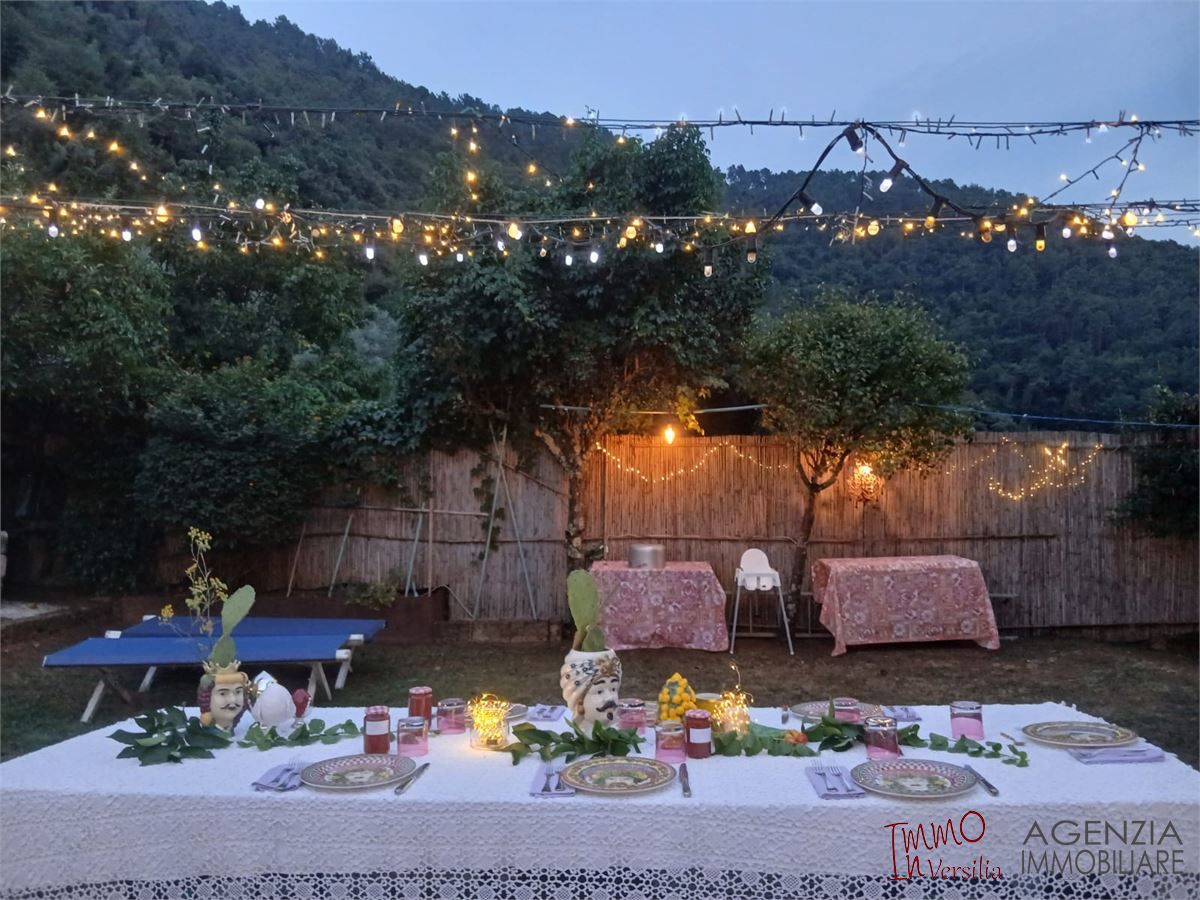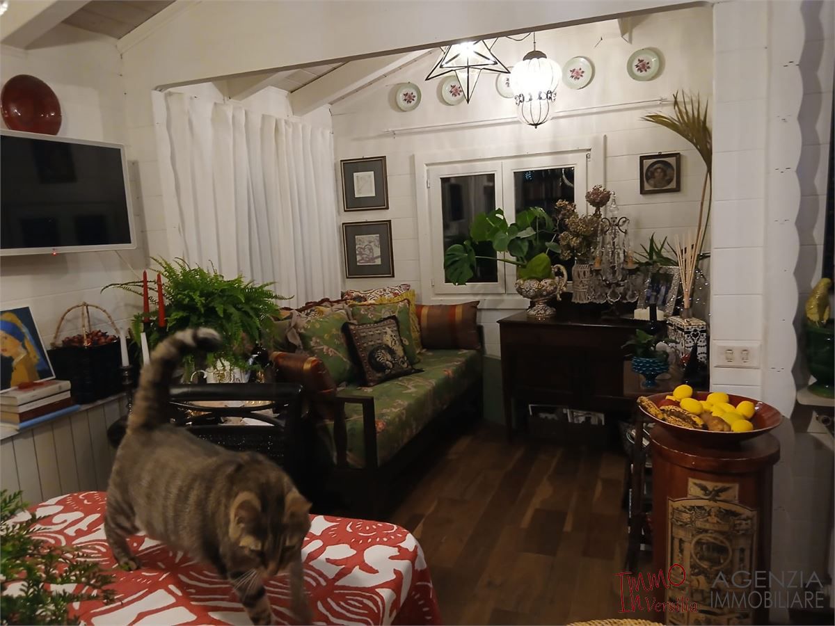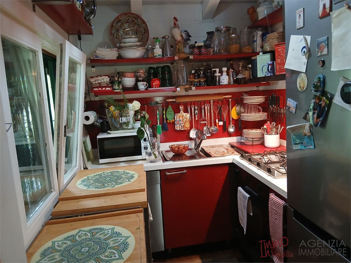 Valdicastello Carducci: Proprietà signorile tipo Fascinoso Chalet in contesto riservato e tranquillo con giardino privato su quattro lati. Attraverso uno storico loggiato si accede alla proprietà che si suddivide in luminoso ed accogliente soggiorno in entrata con ampie vetrate sul giardino, pratico cucinotto, due camere medie ed una camera matrimoniale, antibagno e bagno con doccia. Proprietà unica ed accogliente dove ogni particolare è stato studiato per esaltarne il sapore rustico-chic-elegante. Possibilità di realizzare un ampliamento multifunzionale in giardino. - Maggiori Dettagli: Videosorveglianza, Cassaforte, Porta blindata