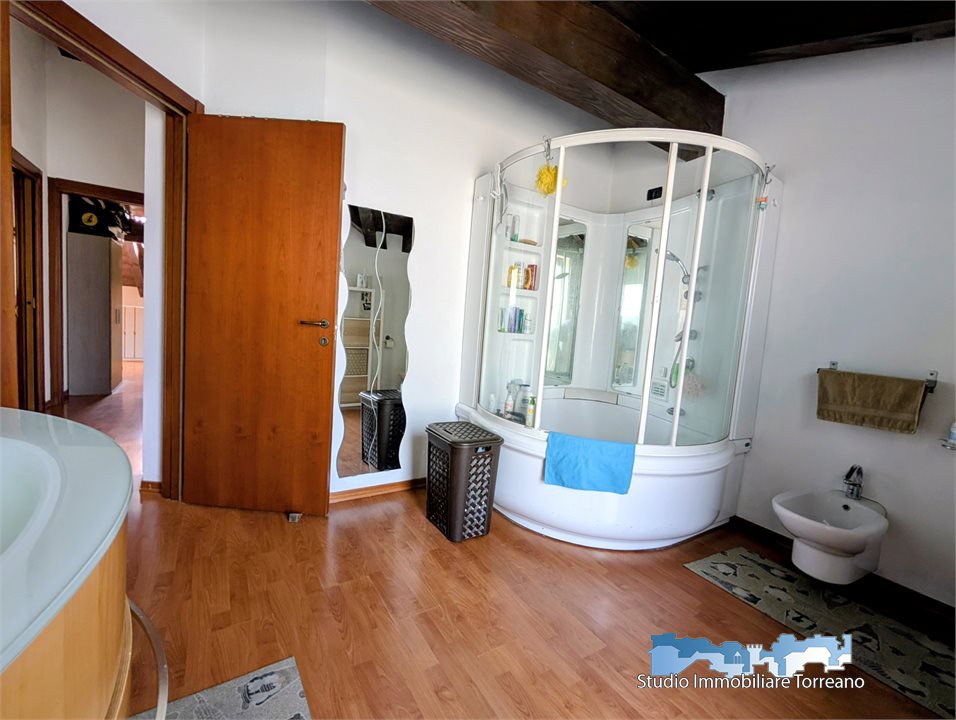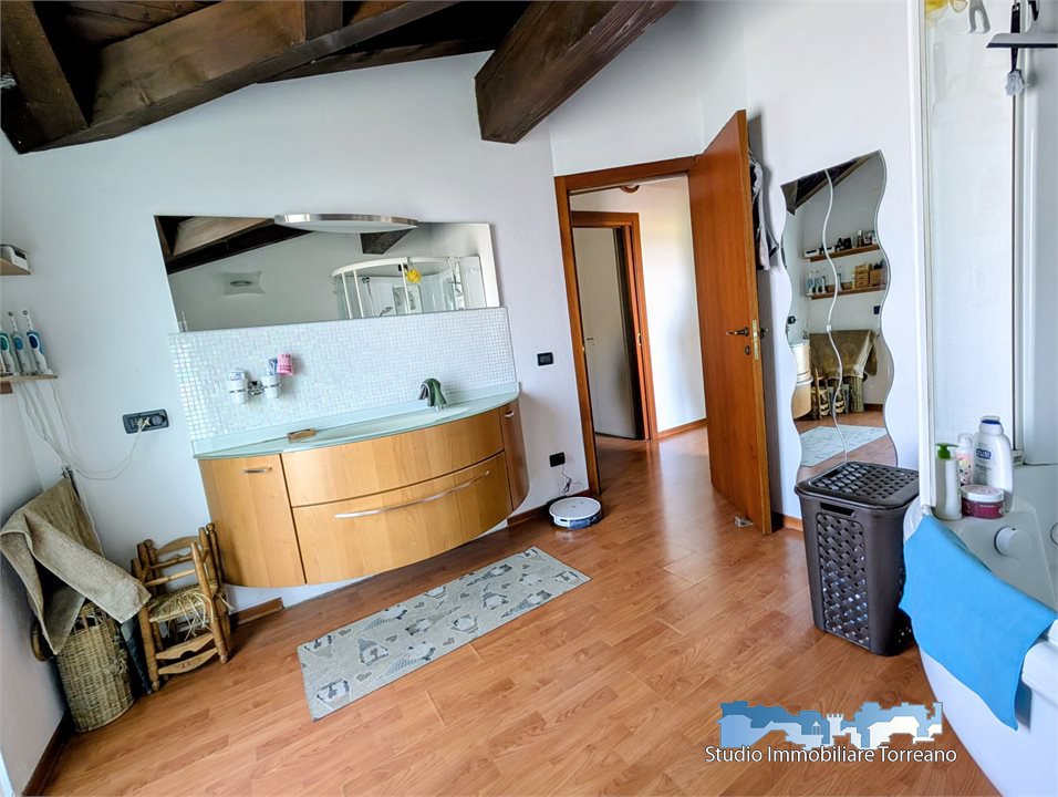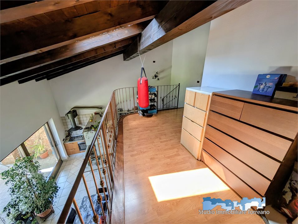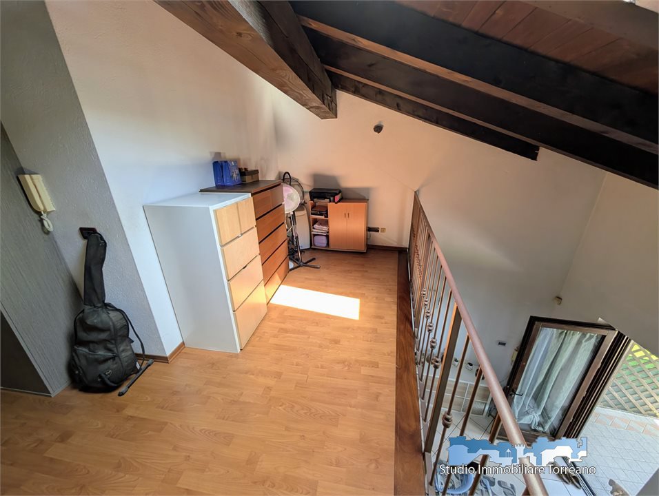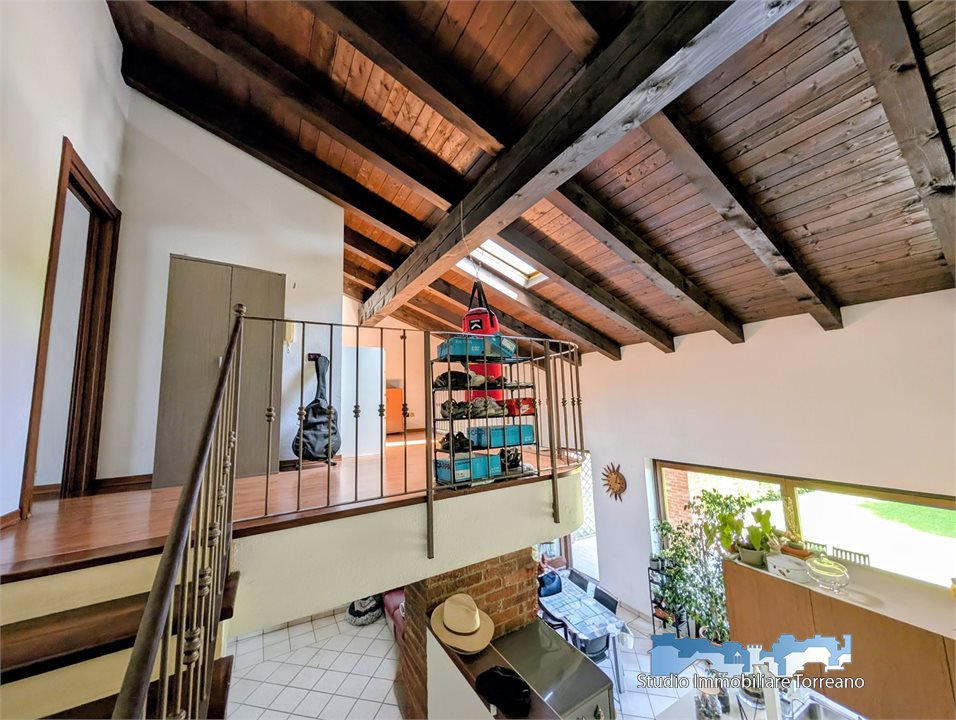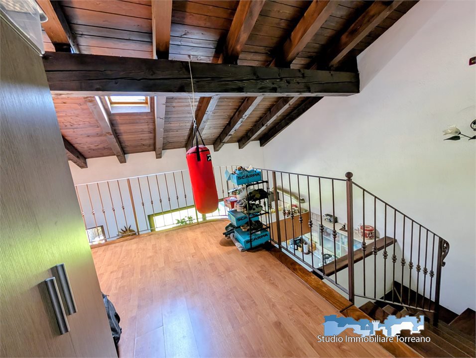 Il piano superiore: La scala interna conduce a una bella zona studio soppalcata, aperta sul living con tetto a vista - perfetta anche come spazio smart working o angolo relax. Il disimpegno introduce alla zona notte, composta da tre camere da letto, bagno e balcone. Il piano è dotato di climatizzatori per il massimo comfort in ogni stagione.