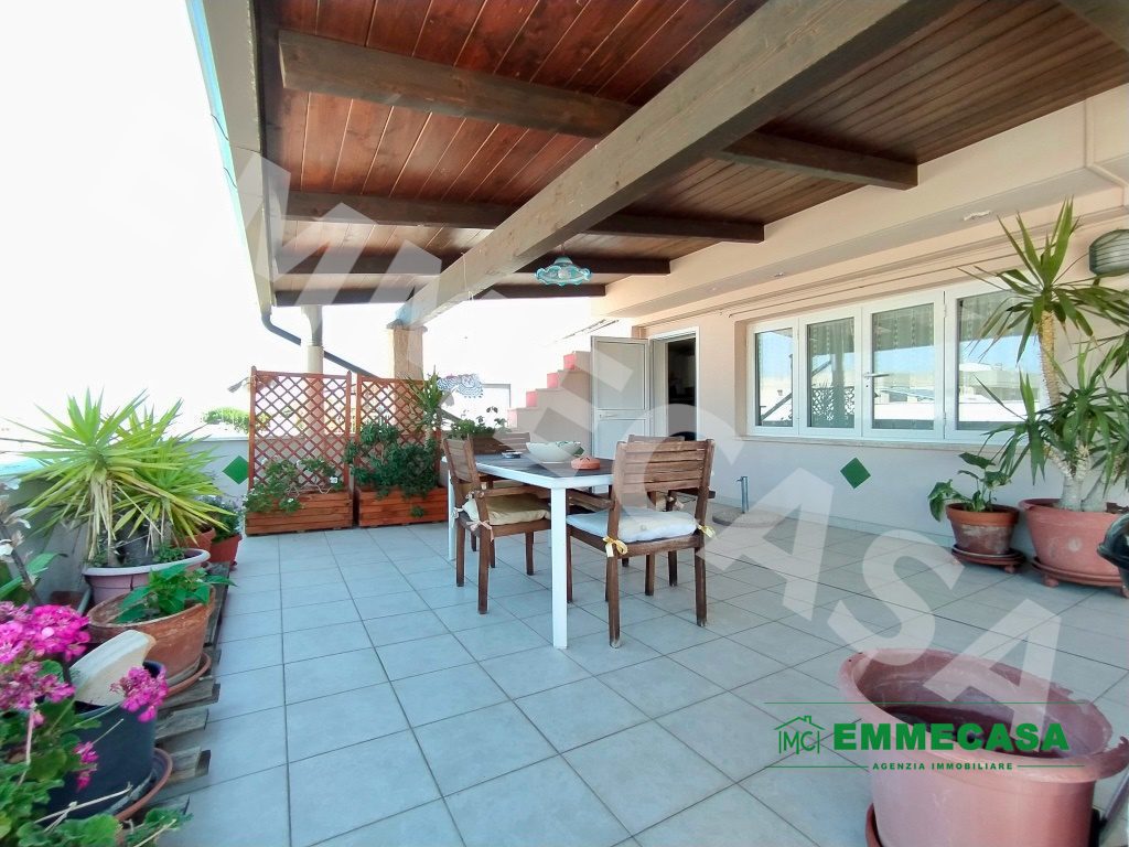 E se amate ricevere amici o semplicemente fare colazione da un punto di osservazione insolito c'è anche il grande terrazzo attrezzato con pergolato e annesso ripostiglio e vano tecnico adibito a cucina e zona lavanderia.