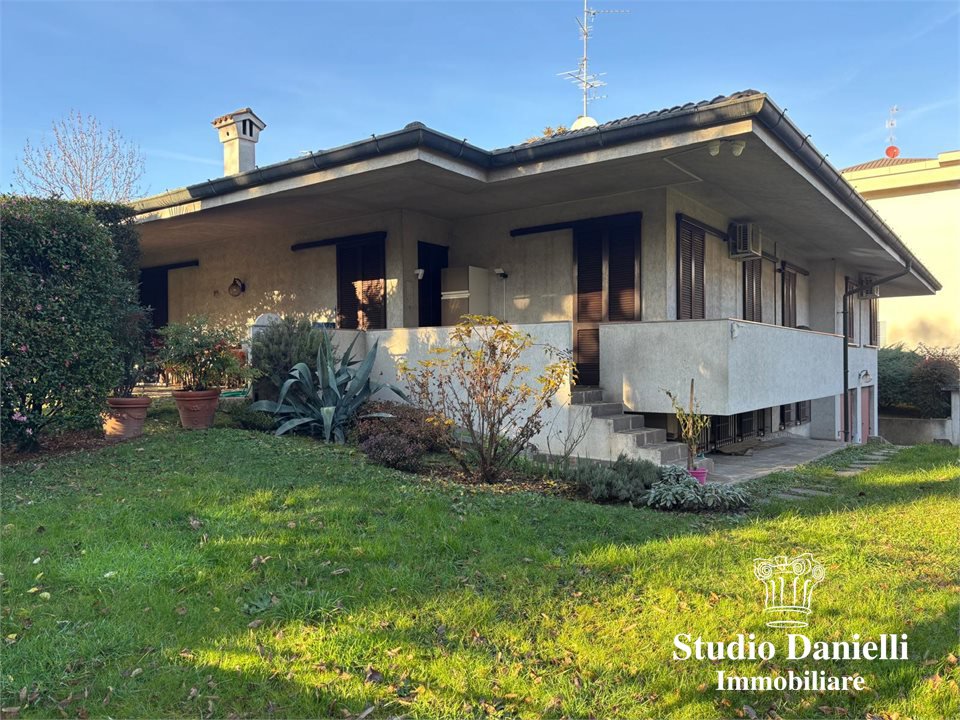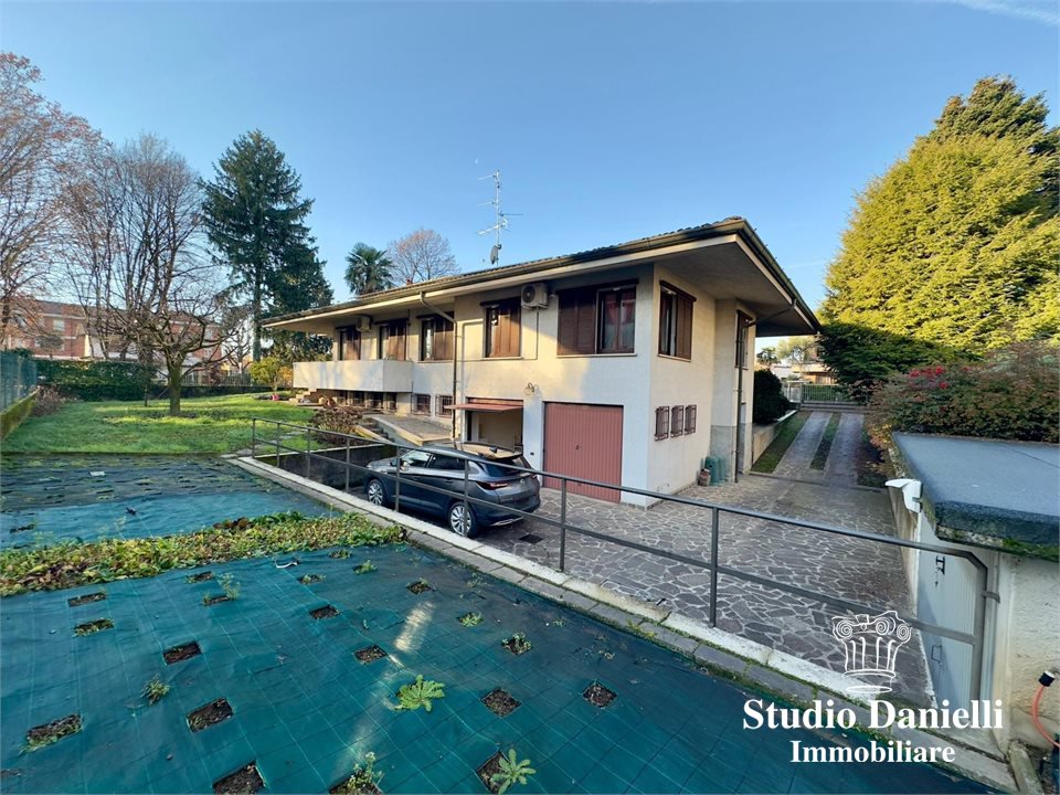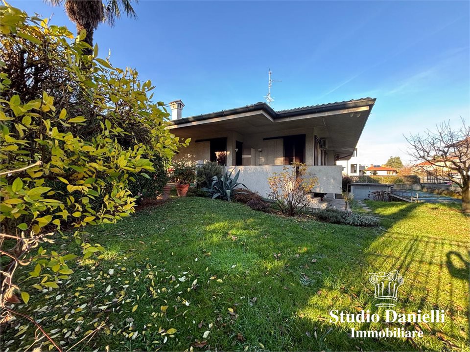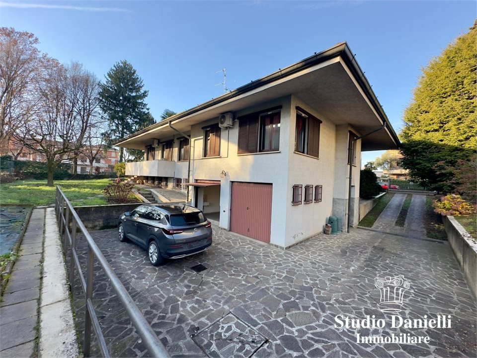 Rif. LD-Via Cavour, GIUSSANO, In zona tranquilla e residenziale, proponiamo in vendita villa singola luminosa e di ampia metratura, ideale per chi desidera indipendenza, comfort e spazi ben distribuiti. L'abitazione si sviluppa principalmente su un unico livello abitativo. Al piano terra troviamo l'ingresso, disimpegno, grande soggiorno doppio, cucina abitabile, tre ampie camere da letto (di cui due matrimoniali) e doppi servizi. Il piano seminterrato, collegato internamente, ospita cantina/taverna, bagno, lavanderia, centrale termica e accesso diretto al box doppio in larghezza. Completa la proprietà un ulteriore ampio box doppio al piano terra, ideale anche come spazio deposito o per ulteriori esigenze. La villa è circondata da un giardino privato che abbraccia l'intera abitazione, perfetto per momenti di relax all'aperto e per chi ama la privacy.