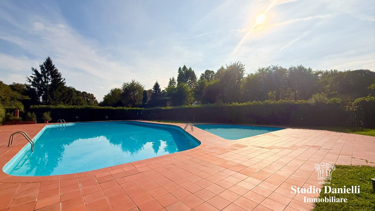 Correzzana (La Cerchia) esclusivo e signorile residence con grande parco condominiale, portineria, videosorveglianza, due piscine oltre a campi da tennis e basket. Se sei alla ricerca di una soluzione indipendente proponiamo in questo elegante complesso residenziale una luminosa porzione di villa bifamiliare ben tenuta disposta su due livelli abitativi con mansarda abitabile e ampia taverna oltre ad ampio giardino piantumato. L'ottima disposizione degli spazi inizia al piano terra dove troviamo l'ampia zona giorno, con ingresso sul salone doppio con camino e affaccio sul portico e l'ampio giardino (esposizione sud/est/ovest) la cucina abitabile, il servizio e un comodo ripostiglio. Al primo piano ci accolgono due luminose e spaziose camere, la matrimoniale con balconata, zona studio/relax oltre ai doppi servizi. All'ultimo piano, mansardato un ampio locale openspace con camera, servizio, ripostiglio e aria condizionata. Completa la proprietà al piano interrato la taverna con camino, lavanderia/centrale termica oltre all'ampio box. Ottime finiture, cotto, parquet ulivo, serramenti doppi vetri, persiane, antifurto, caldaia e velux appena sostituiti. Consegna entro 180 giorni, occasione da non perdere!