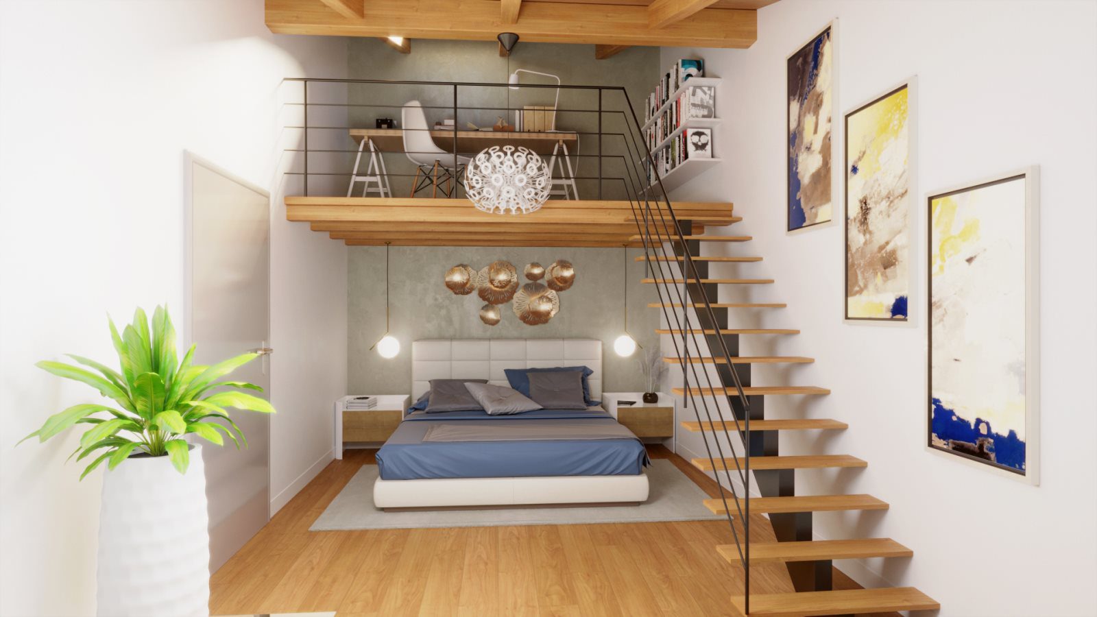 Disposto su due livelli, si compone di ingresso, soggiorno con angolo cottura, disimpegno notte, camera matrimoniale, due bagni, soppalco, balcone, lavanderia, locale caldaia.